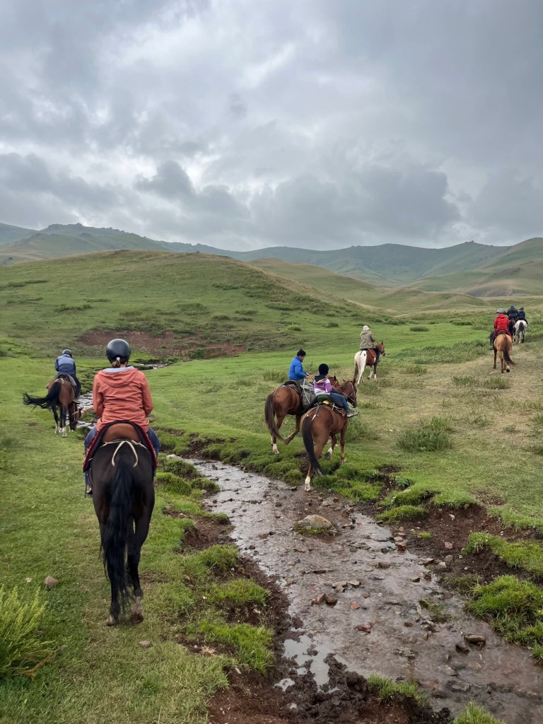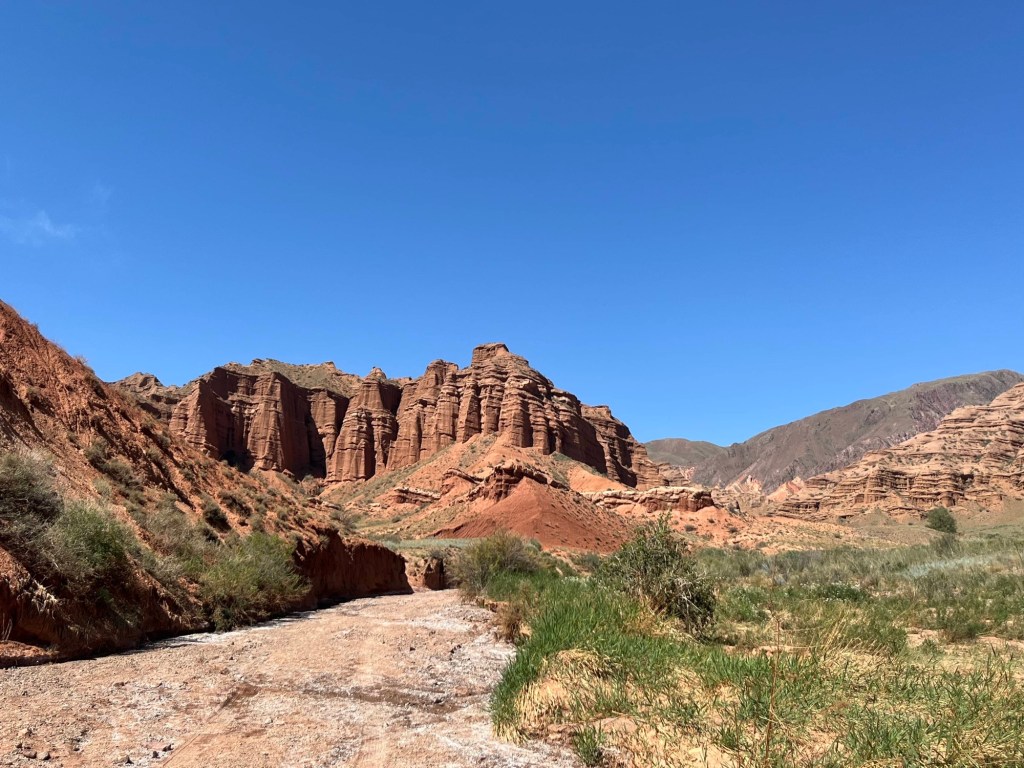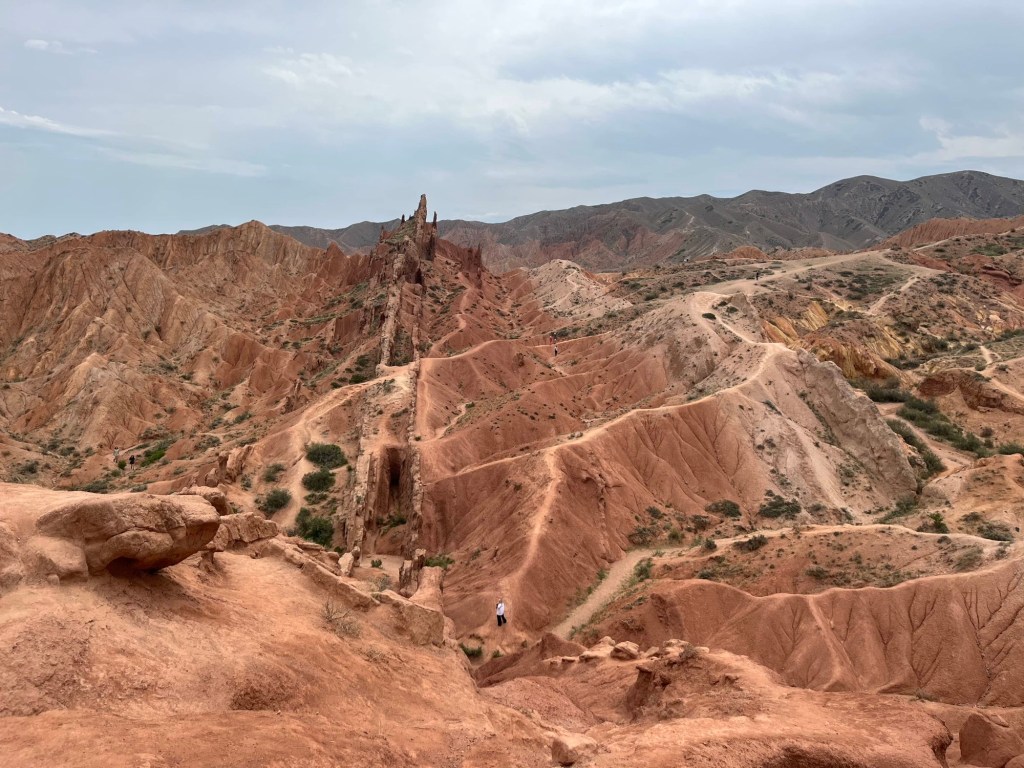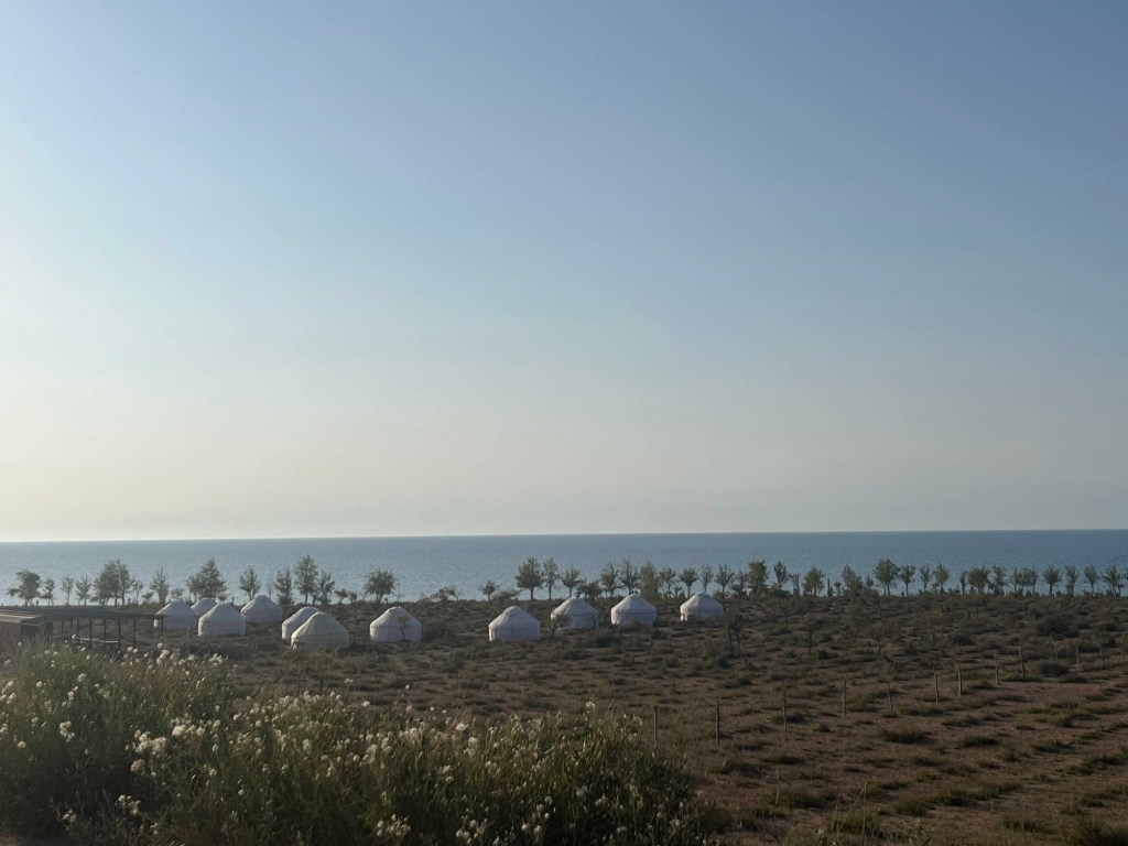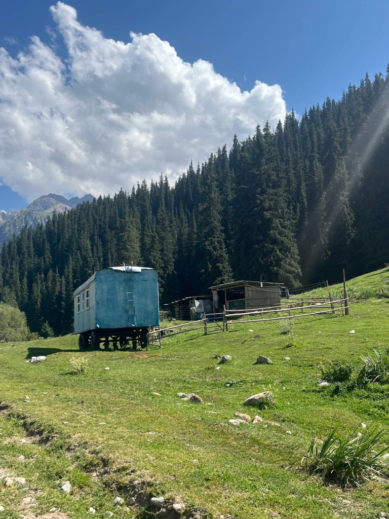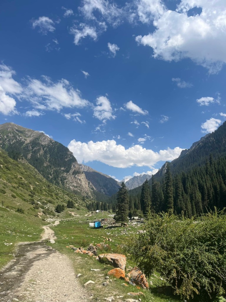 Het viel al bij al reuze mee. Een dik uurtje! Zoals de vorige keer werden auto+chauffeur weer gesplitst van alle passagiers. Ik stak dus met de kindjes over de lange brug tevoet over en kwam daar terecht in een inefficiënt systeem van rijtjes en controle. Er drong zich effe een kleine ruzie op met voorkruipers, maar vrij vlot arriveerden we ineens in niemandsland tussen Kirgizië en Kazachstan. Daarna was t verder wandelen naar de controle van Kazachstan. Daar moet je blijkbaar zelf weten dat Europese paspoorten gans links moeten aanschuiven. Gelukkig kwam een Pools meisje ons uit de foute rij halen met de melding “dat staat hier nergens aangegeven maar ge wilt dat misschien wel weten”. Hallucinant toch, hang dan toch een papiertje voor de toeristen als er maar ene is die Engels kan🤣.