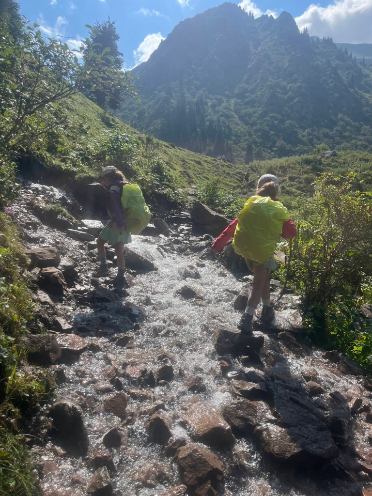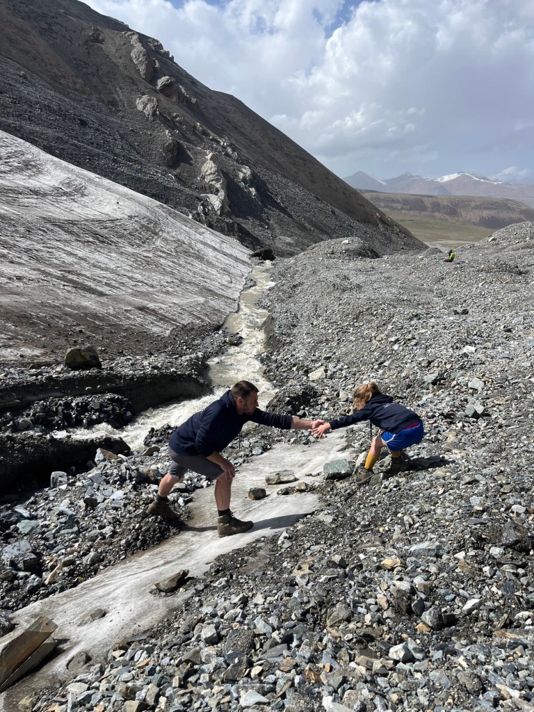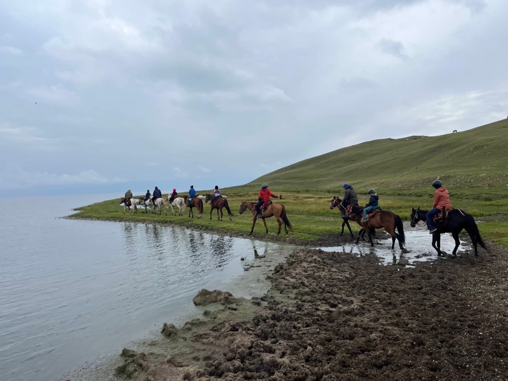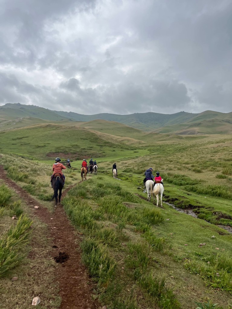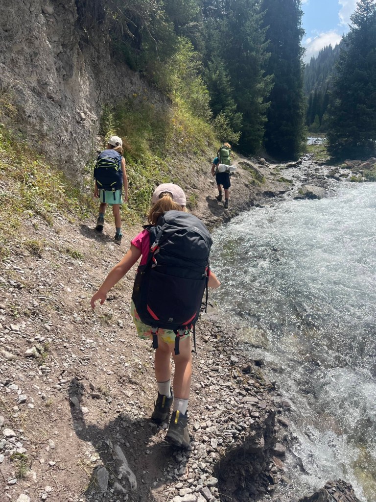 Het viel al bij al reuze mee. Een dik uurtje! Zoals de vorige keer werden auto+chauffeur weer gesplitst van alle passagiers. Ik stak dus met de kindjes over de lange brug tevoet over en kwam daar terecht in een inefficiënt systeem van rijtjes en controle. Er drong zich effe een kleine ruzie op met voorkruipers, maar vrij vlot arriveerden we ineens in niemandsland tussen Kirgizië en Kazachstan. Daarna was t verder wandelen naar de controle van Kazachstan. Daar moet je blijkbaar zelf weten dat Europese paspoorten gans links moeten aanschuiven. Gelukkig kwam een Pools meisje ons uit de foute rij halen met de melding “dat staat hier nergens aangegeven maar ge wilt dat misschien wel weten”. Hallucinant toch, hang dan toch een papiertje voor de toeristen als er maar ene is die Engels kan🤣.