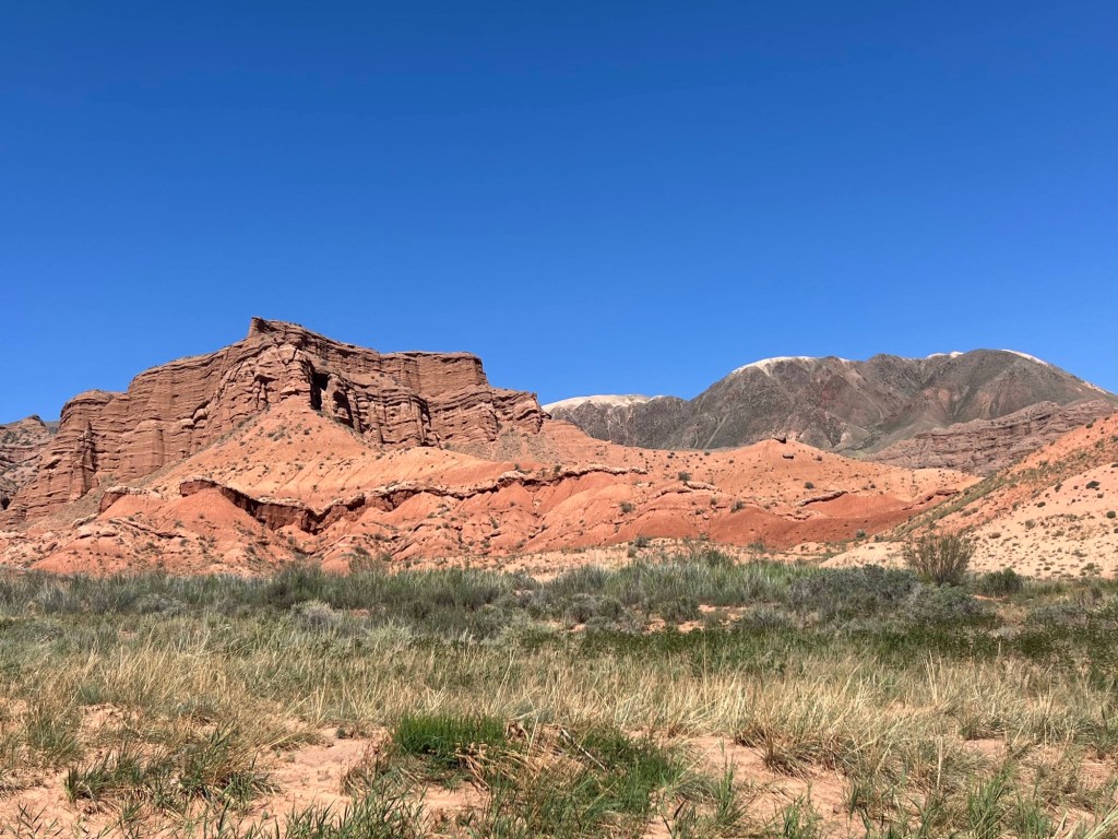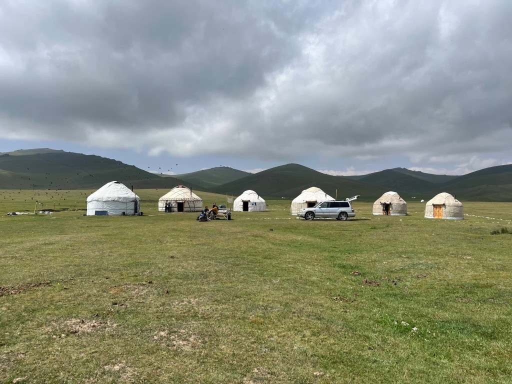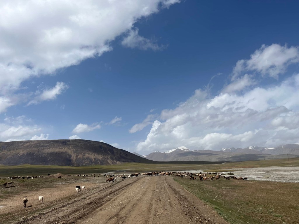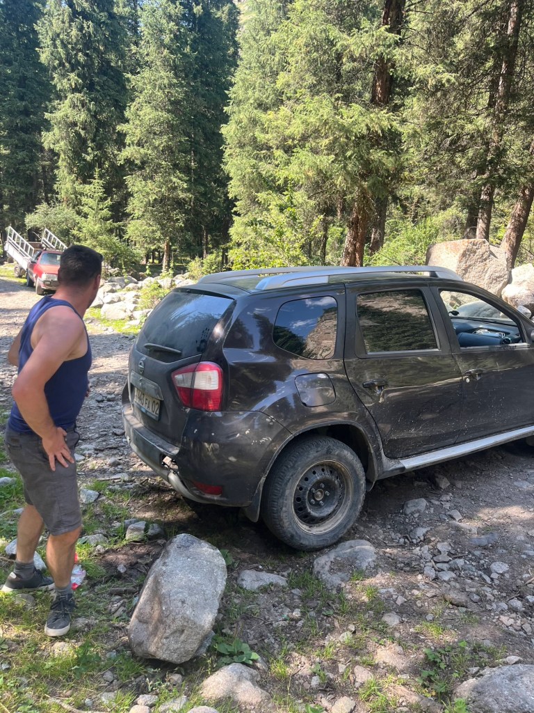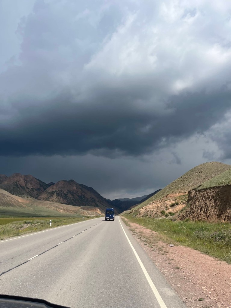 Tijd om uit Bishkek te vertrekken en weer de grens over te springen richting Kazachstan. Onze vrienden deden dat gisteren al. Het was voor hen immers wat onduidelijk of er eventueel nog miserie zou zijn aan de grens met die verdwenen nummerplaat. Na verschillende politiebureaus hadden ze wel al een papier dat de nummerplaat gestolen was. Maar na een extra politiecontrole, met veel “gemouwveeg” om de boete te ontwijken, blijkt dat er toch nog een ander papier nodig zou zijn om “te mogen blijven rijden met een auto zonder nummerplaat”. Ze houden hier van omslachtig en papierkes zenne 😂. Maar dus alles is bespreekbaar ook. Stefanie heeft zich toch al wel een paar keer uit een boete dreiging geluld 😇