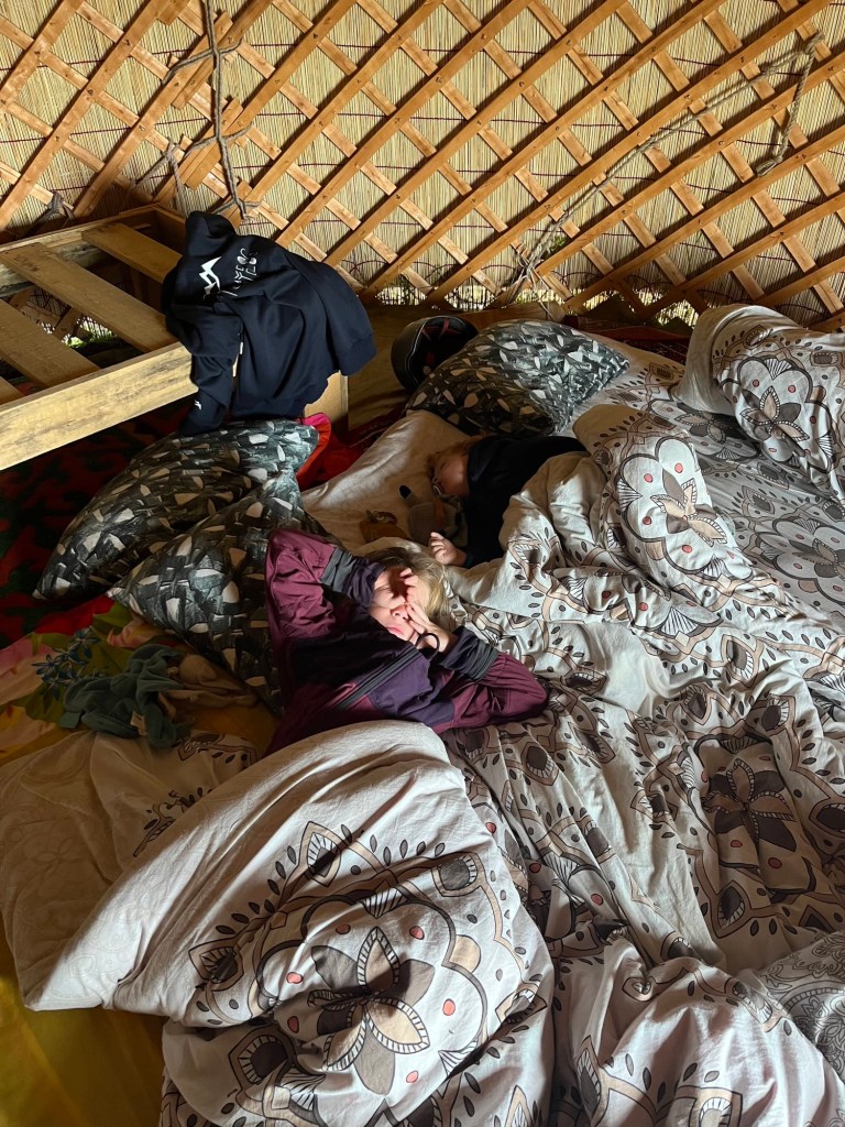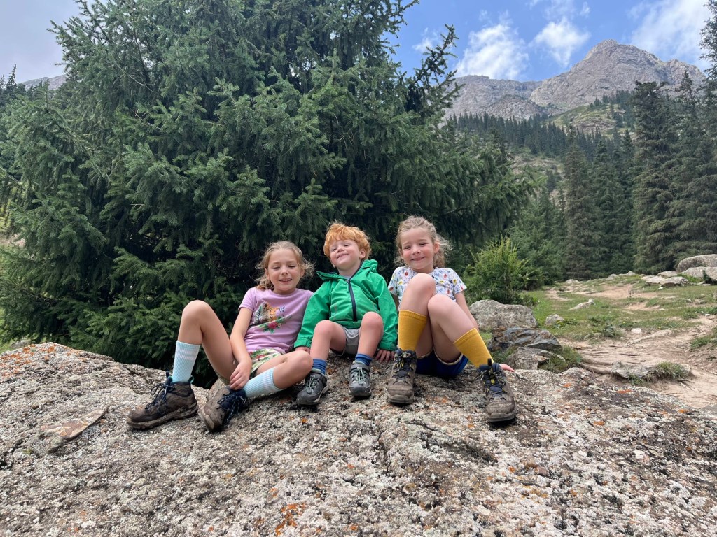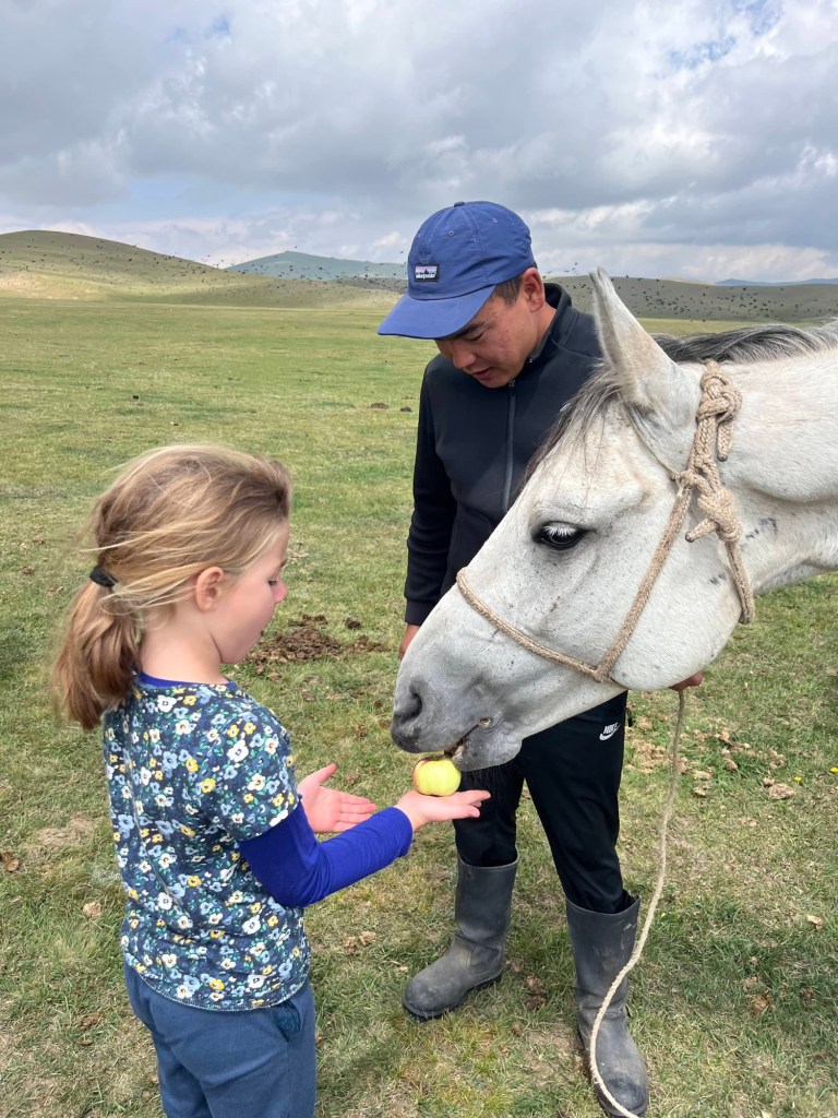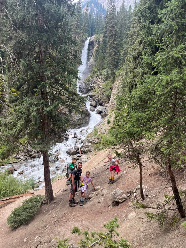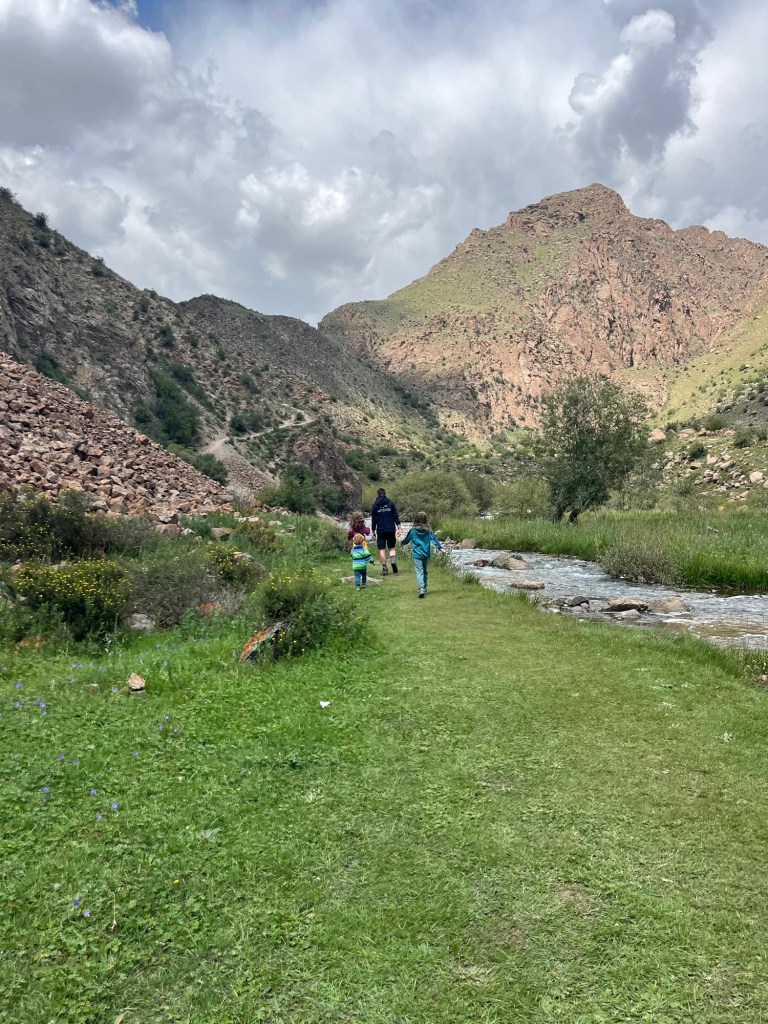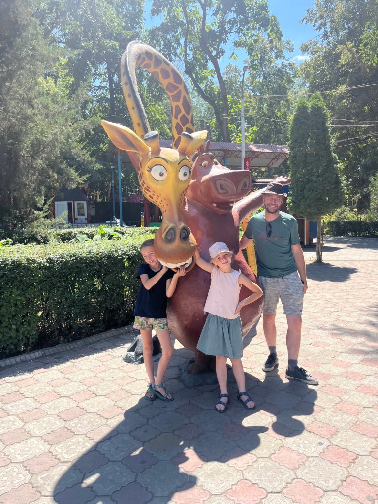 De rit naar Almaty was nog een paar uur en duurde verdacht lang doorheen de stad (file!) maar dankzij het vooruitzicht van een reeds goedgekeurd appartementje en aperitieven met onze vrienden, bleven we doorperen! De kids genoten van wat schermtijd en donuts.