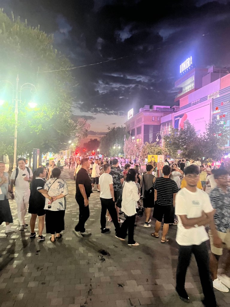 We namen 2 yandex taxis naar de stad en zochten een restaurantje op. Geen hoogvlieger maar het was leuk om de best wel bruisende stad te ontdekken bij avond.