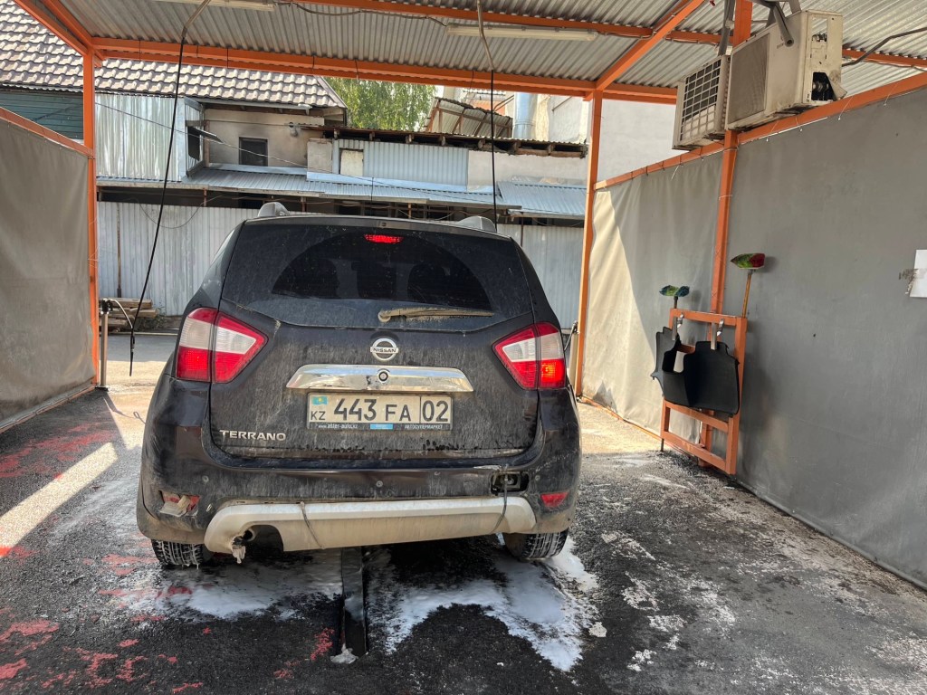 Wij dus door naar carwash 3 op hoop van zegen dat we er dan toch zelf iets van konden brouwen. We staken onze bijna laatste tenge in t machineke, leenden wat zeemvellen en stofzuigden eindeloos elk stukje vergeten koek, chips en modderbrokje op…. Klaar voor inspectie!