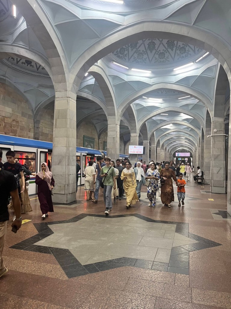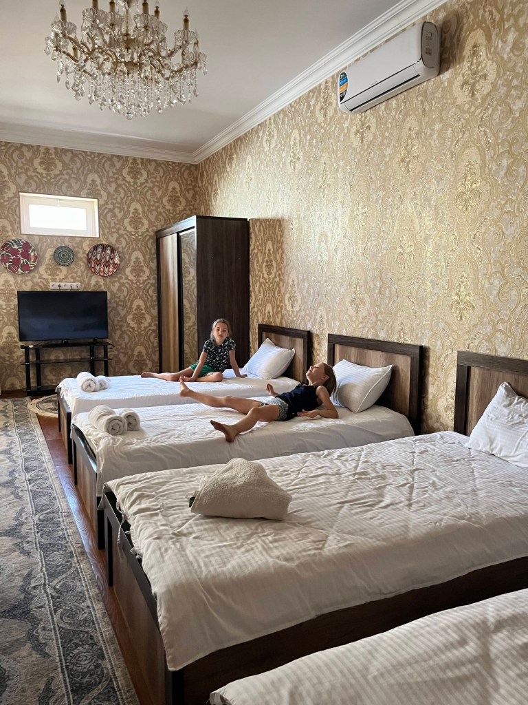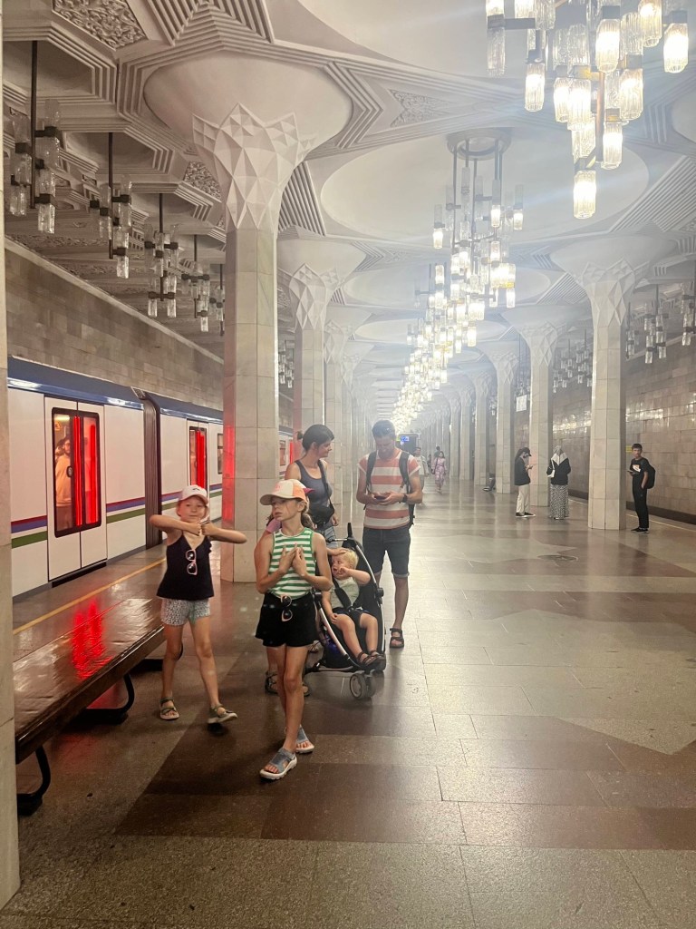 We namen opnieuw een Yandex richting ons hotel van de eerste dagen. Snel inchecken en de stad in om iets te gaan eten. Vraagt ons niet hoe maar op een of andere manier belandden wij in een resto met Russisch discofeest. Ik kan u zeggen… er werd gedanst 😅. (Beeldmateriaal op aanvraag!) De kids gingen in overdrive en Boris vond zelfs een Oezbeekse aanbidster op de dansvloer terwijl Noah de diensters rond zijn vingers draaide…