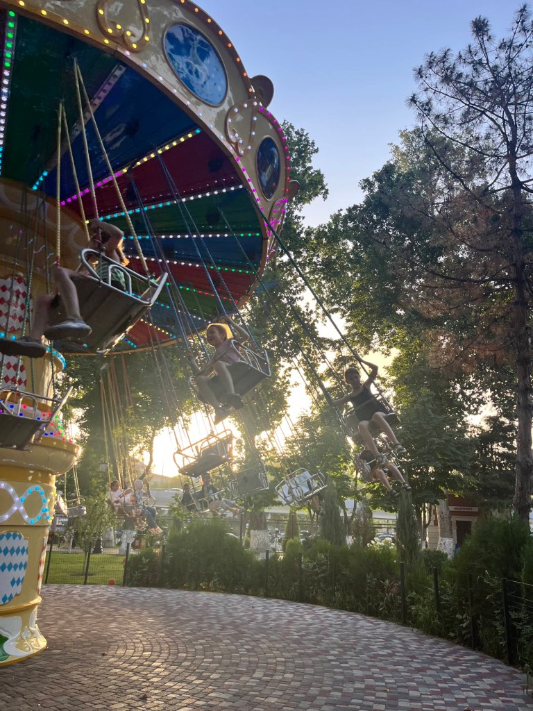 S ochtends snel ontbeten en zoals beloofd nog een laatste keer naar Dream Park ons Oezbeeks geld opmaken. Nog niet alle attracties waren open maar de kids konden toch elk 2 dingen uitkiezen.