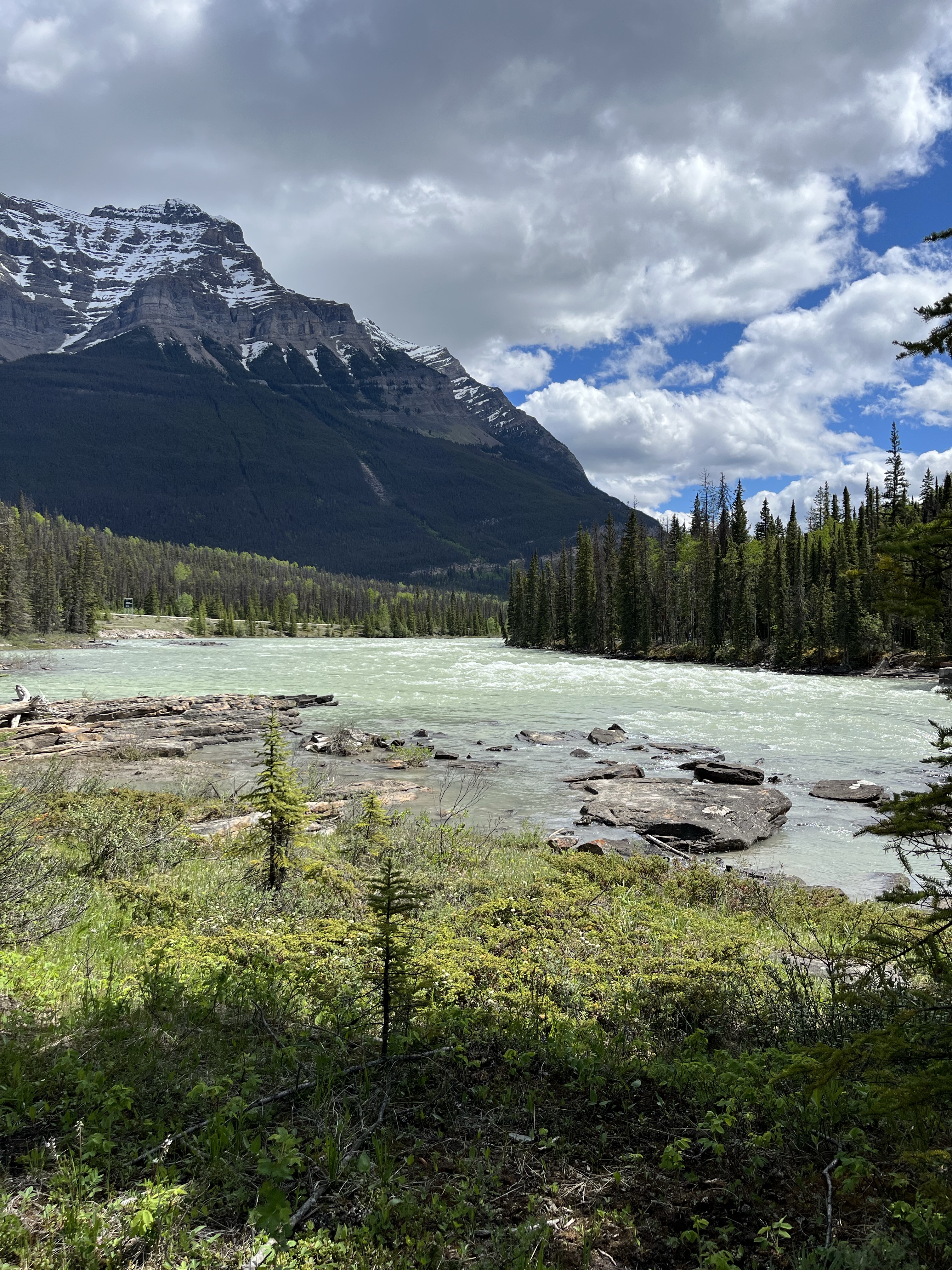 We beginnen wat te slabakken en stonden laat op. Dan nog snel allemaal douchen, soit de tijd om nog veel te wandelen vanochtend was snel foetsie. We reden op t uurtje dat ons restte even langs de Dyea flats. Ooit was t gebied rond onze campsite een goudstadje nu gewoon een prachtig veld bloemen met zicht op de bergen. Beetje spijt dat we niet hier kwamen wandelen gisteren. Veeeeel rustiger en mooier! En ondanks t bord op de brug pasten wij er toch nog prima onder… we hadden zelfs nog een metertje reserve!
