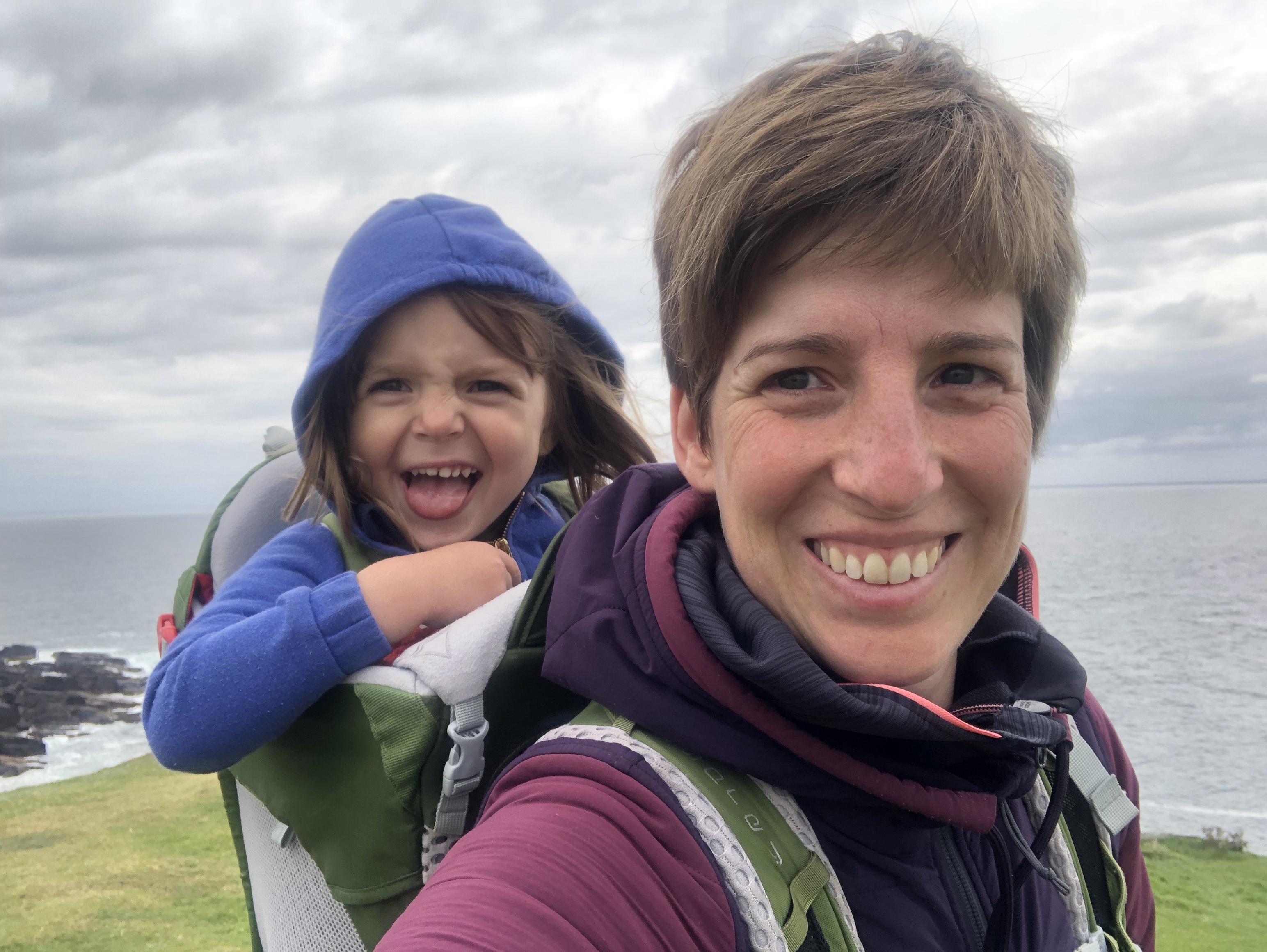 Aan de top was t super winderig dus we gaven Lia snel een banaantje, aten zelf de rest van de snoepjes op, wisselden de kids van draagzak en besloten hen beiden weer naar beneden te dragen. Onder luid protest van Ava die natuurlijk zelf wilde stappen, maar na 2 minuten sliep ze dus t was absoluut een goede keuze… afdalen was best pittig voor de knieen, maar we waren beide super blij dat we toch doorgezet hadden op deze wandeling!