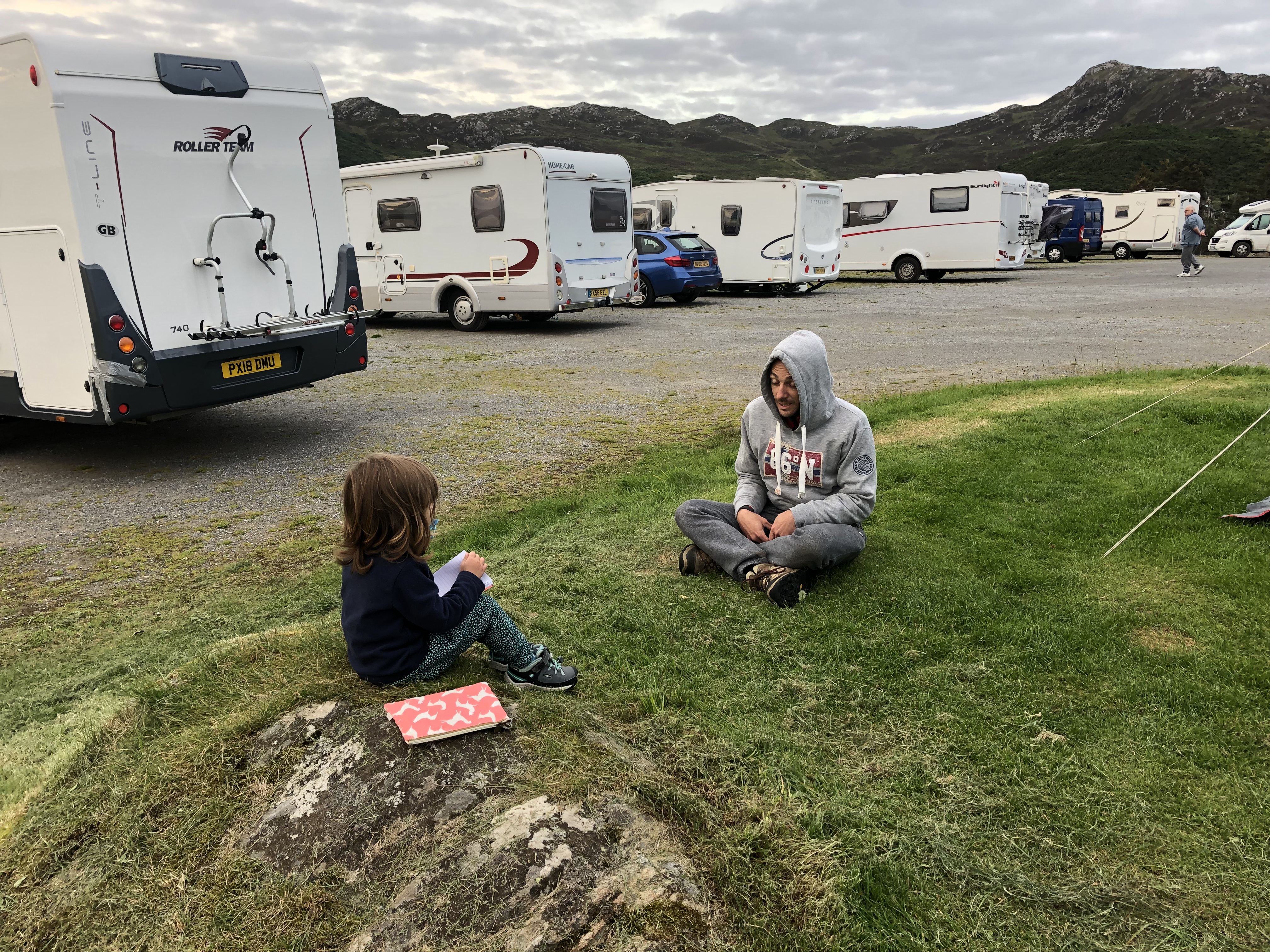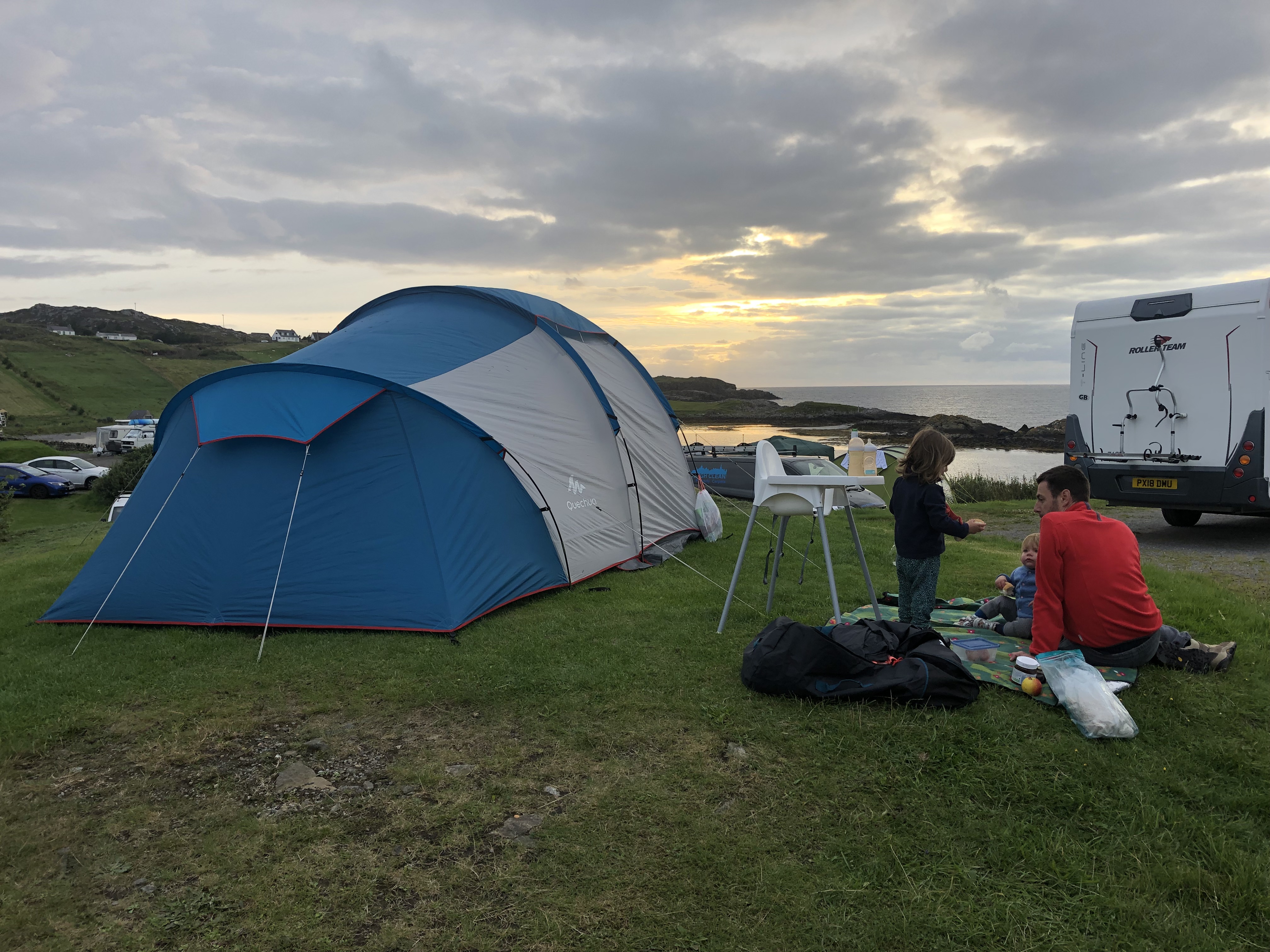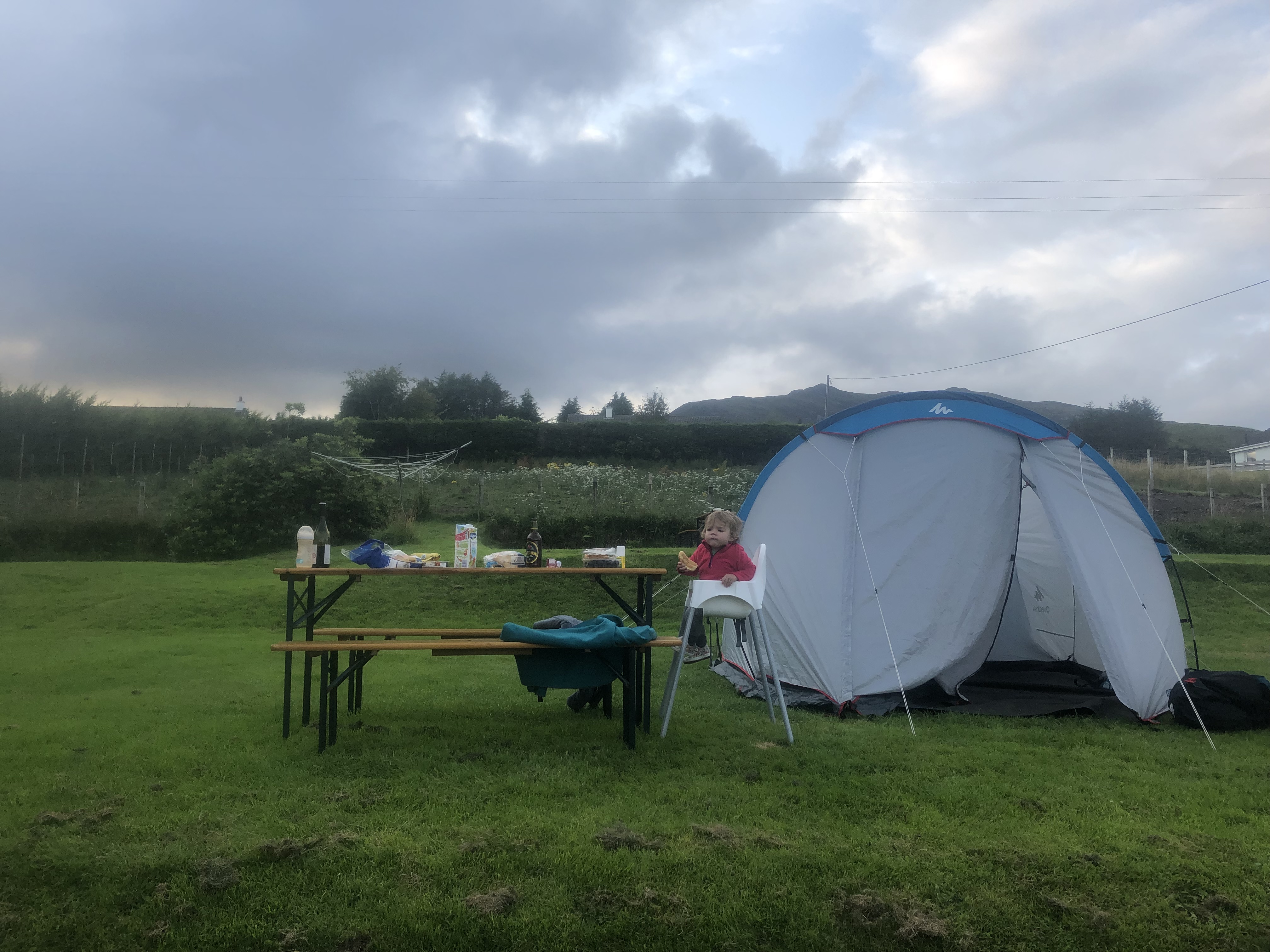 Overnachting: The Wee Campsite in Lochcarron, £15. Een 10tal camperparkeerplaaten en ruimte voor enkele tenten. Kids gratis maar onze grote familietent was £10. Hadden we een kleinere tent gehad waren we voor £10 gesteld… super goedkoop dus!