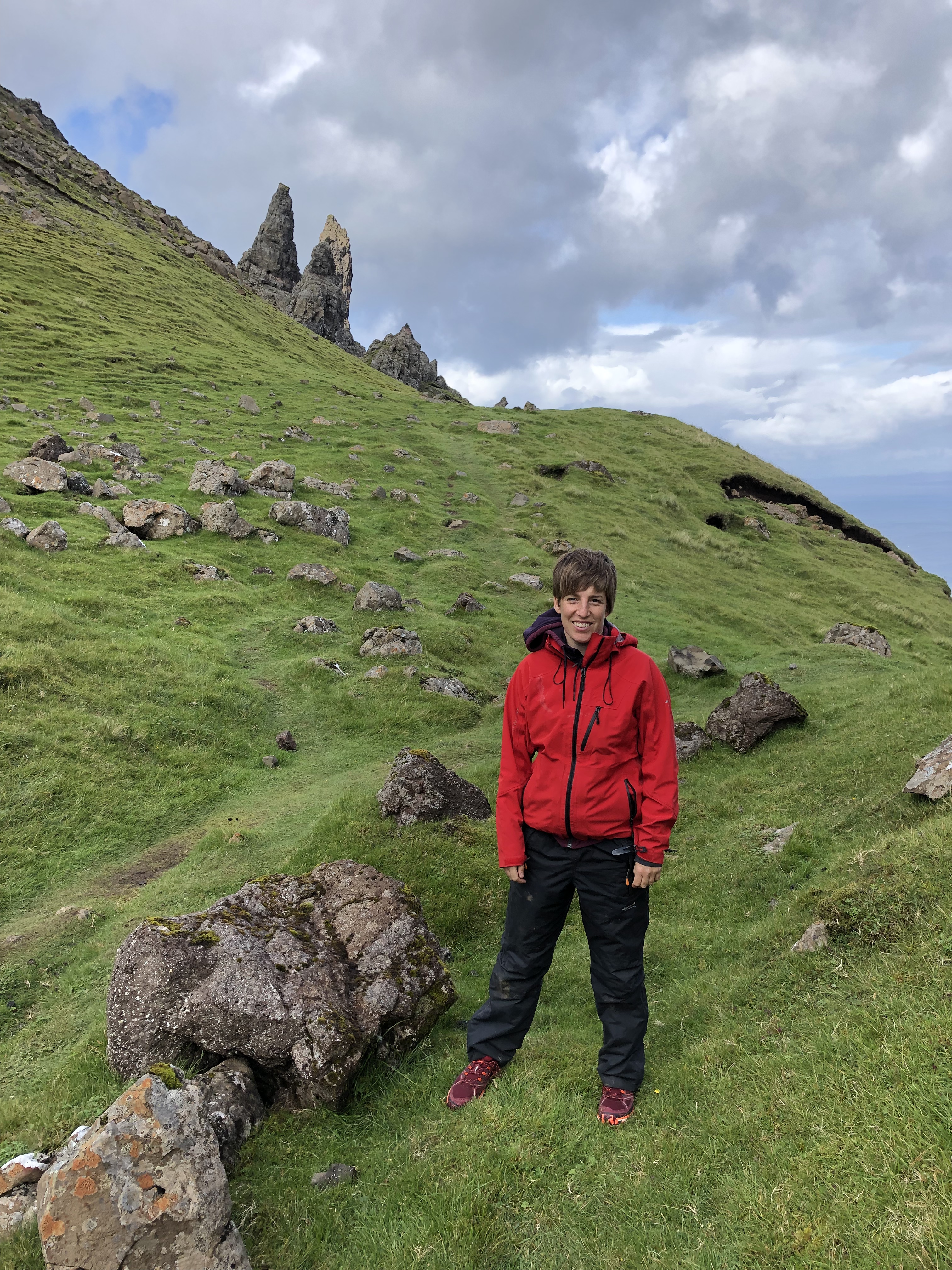 We reden tot aan de wandeling die ik echt graag wilde doen bij “Old Man of Storr” Een gigantische rotsformatie. Het bos bij de start waarover het ANWB wandelboekje sprak, was eerder ontbost maar we zagen alle auto’s langs de kant van de weg al 100den meters tevoren dus parkeerden ons rustig en besloten ook door de wei te vertrekken aangezien we best veel andere toeristen die routen zagen nemen.