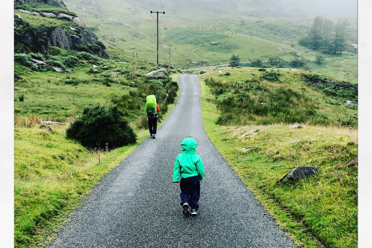 Ava zette stevige tred maar wilde constant schapen kijken en klom dan op de omheiningen (gelukkig hier geen elektriciteit op de draden) dus na een tijdje hebben we ze dan maar opgesloten in de tula draagzak om toch ook geen uren te doen over de hike. We hadden immers nog een paar mooie korte wandelingetjes in de map zitten…