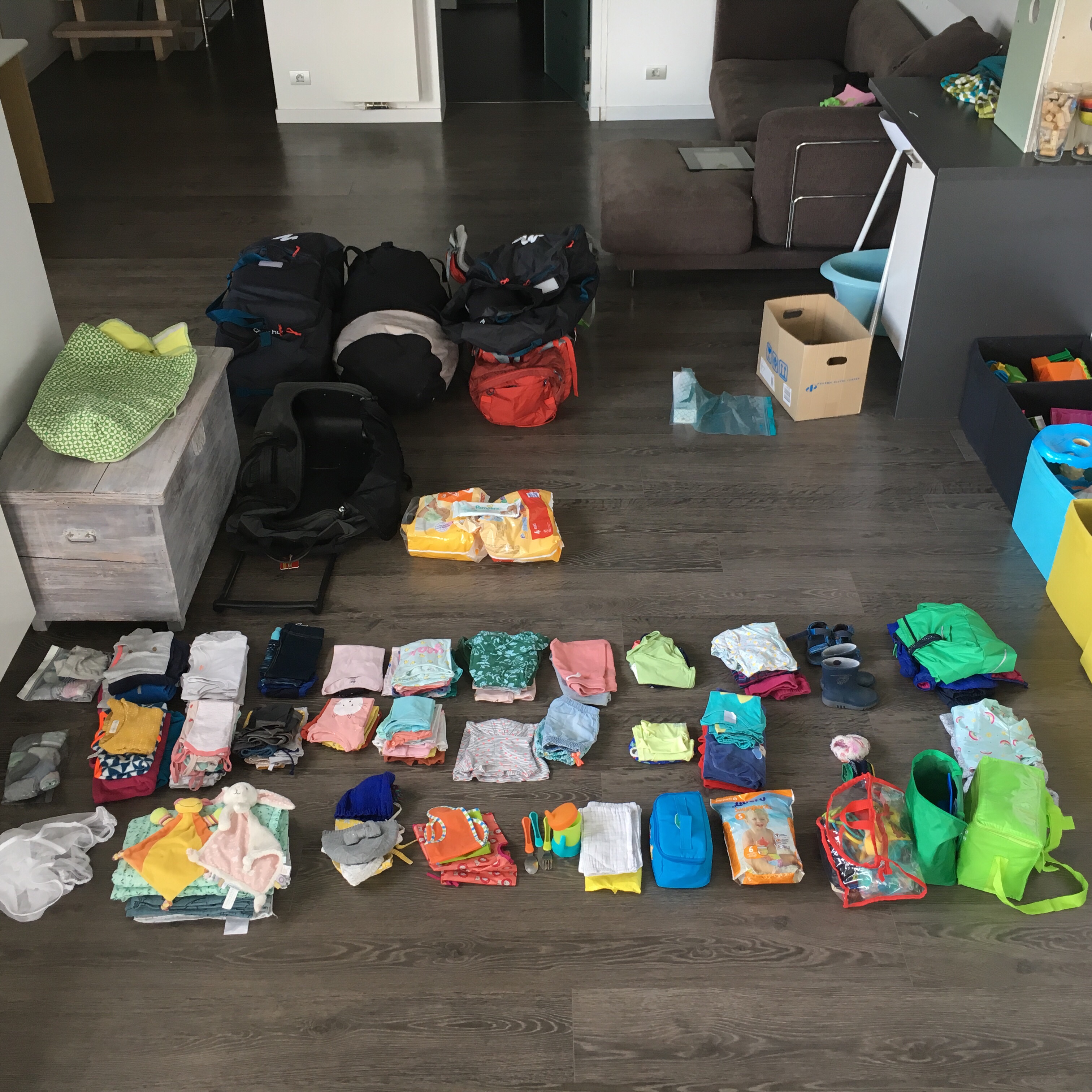 De bagage is dan weer volledig mijn domein… gevolg 10keer zoveel als zou moeten. Of om Kato te quoten “Tine, ge gaat op reis niet verhuizen”. Na de spreekwoordelijke sjot onder mijn kont is de helft ongeveer thuisgebleven, maar nog steeds heb ik als een bezorgde mama met hamsterneigingen de volksverhuizing voorbereid. (Ja, ik heb echt effe overwogen om die wipper voor Lia mee te nemen & Ava’s baby bjorn pop wacht momenteel nog een lastminute reisvisa af)