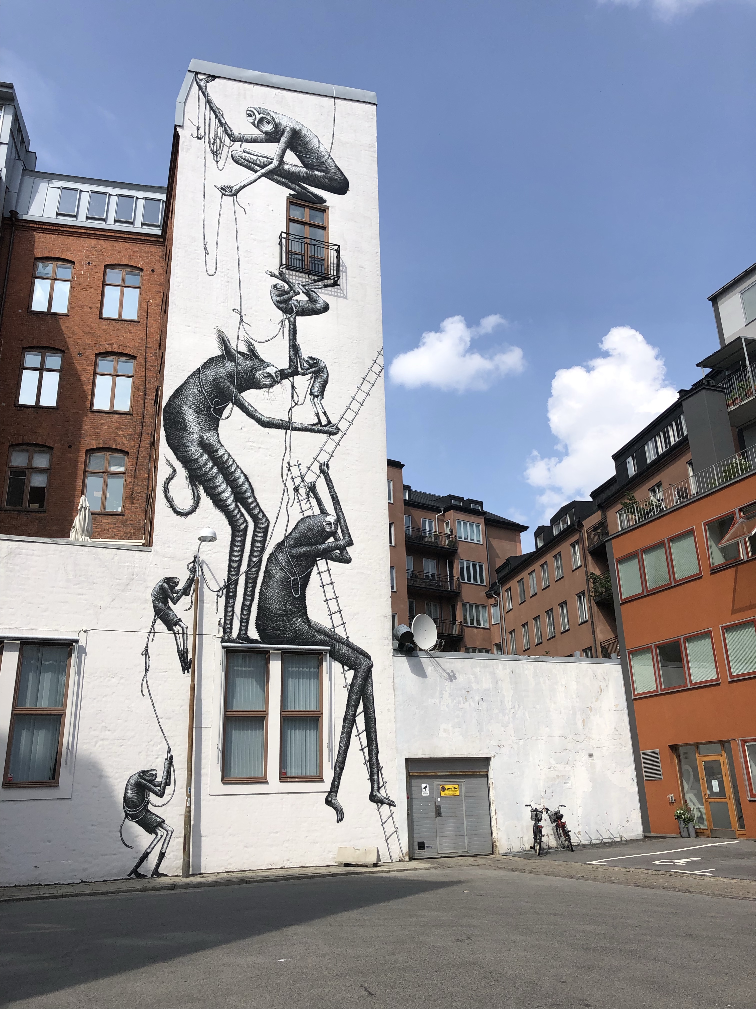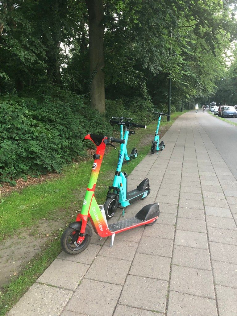 Malmö binnenrijden ging moeiteloos. Dankzij Kato haar goede tip hebben wij de Park4Night app en kan je perfect reviews lezen van (slaap)parkings en verborgen plekjes. Zo staan we nu in t midden van de stad op een parking aan Slottsparken die ons overdag voor 5u 10€ kostte maar nu vannacht gratis is… en t zotte is, hier in Malmö zie je amper auto’s. De hele stad is ingenomen door fietsen, bakfietsen in allerlei vormen en maten en… deelsteps. En niet zoals bij ons op vaste afhaalplekken, nee, echt overal kan je hem achterlaten en na nog geen straat wandelen heb je er al een 5tal gevonden ergens tegen een boom, in een fietsenrek en occassioneel eens in de bush…