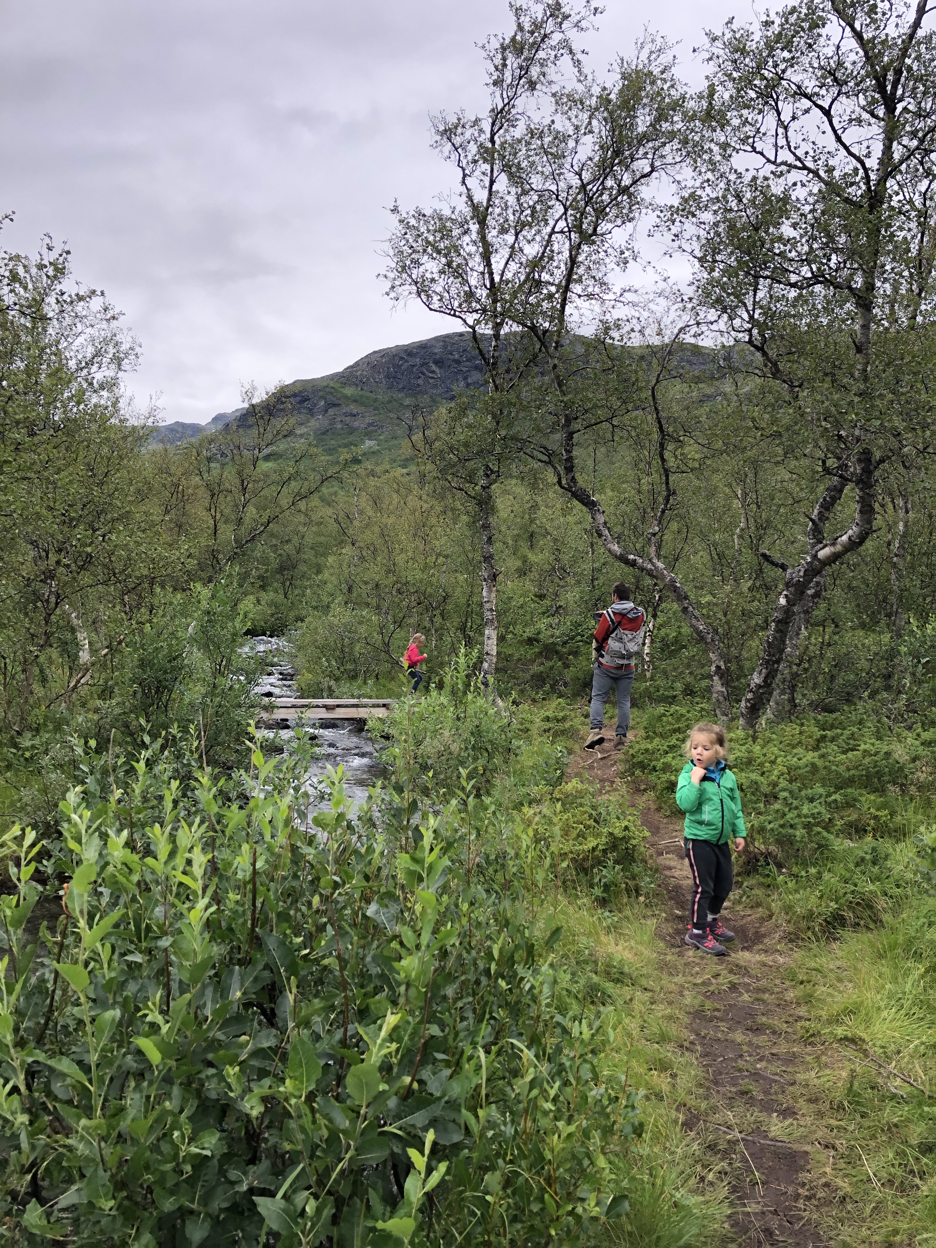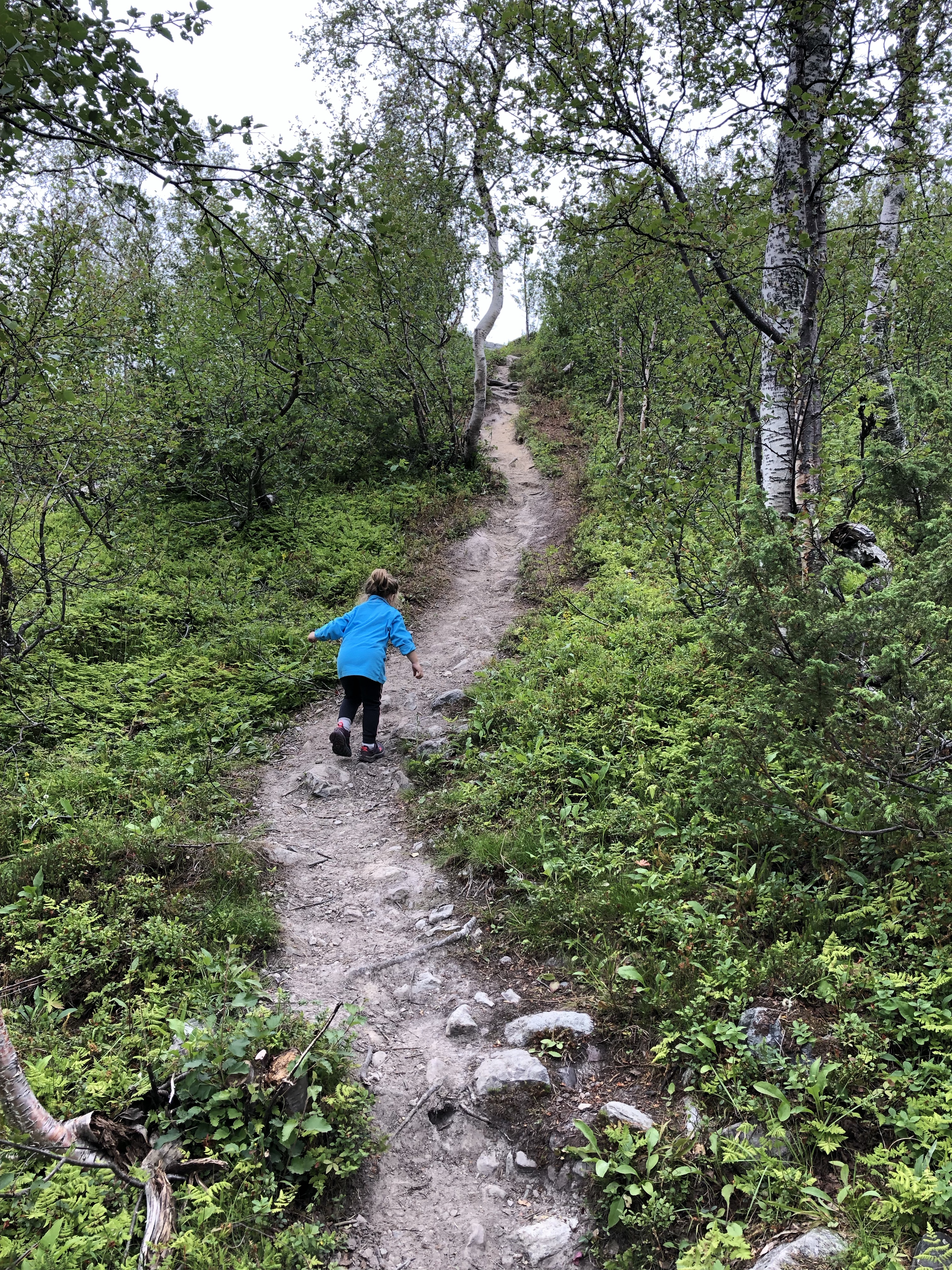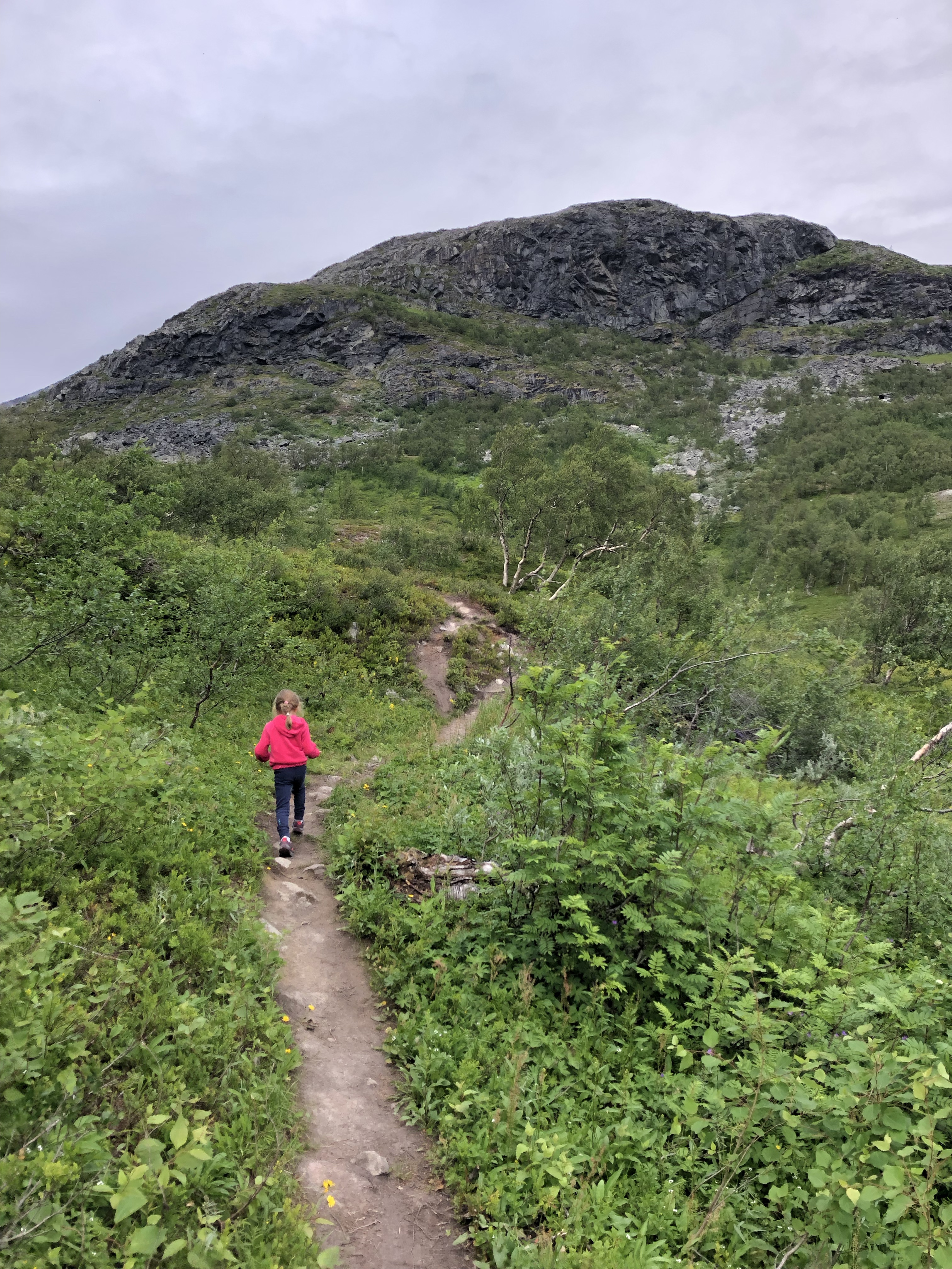 De kids hadden weinig zin om te poseren voor mijn fotoshoot en Lia sopte haar stapschoenen in de zee… dus na een dik halfuurtje gingen de 2 teams weer samen op pad naar boven toen t lichtjes begon te miezeren. Lia werkte minder mee dus Christoph besloot haar dan maar als een muilezel naar boven te sleuren nadat hij eerst Ava naar boven geleid had.