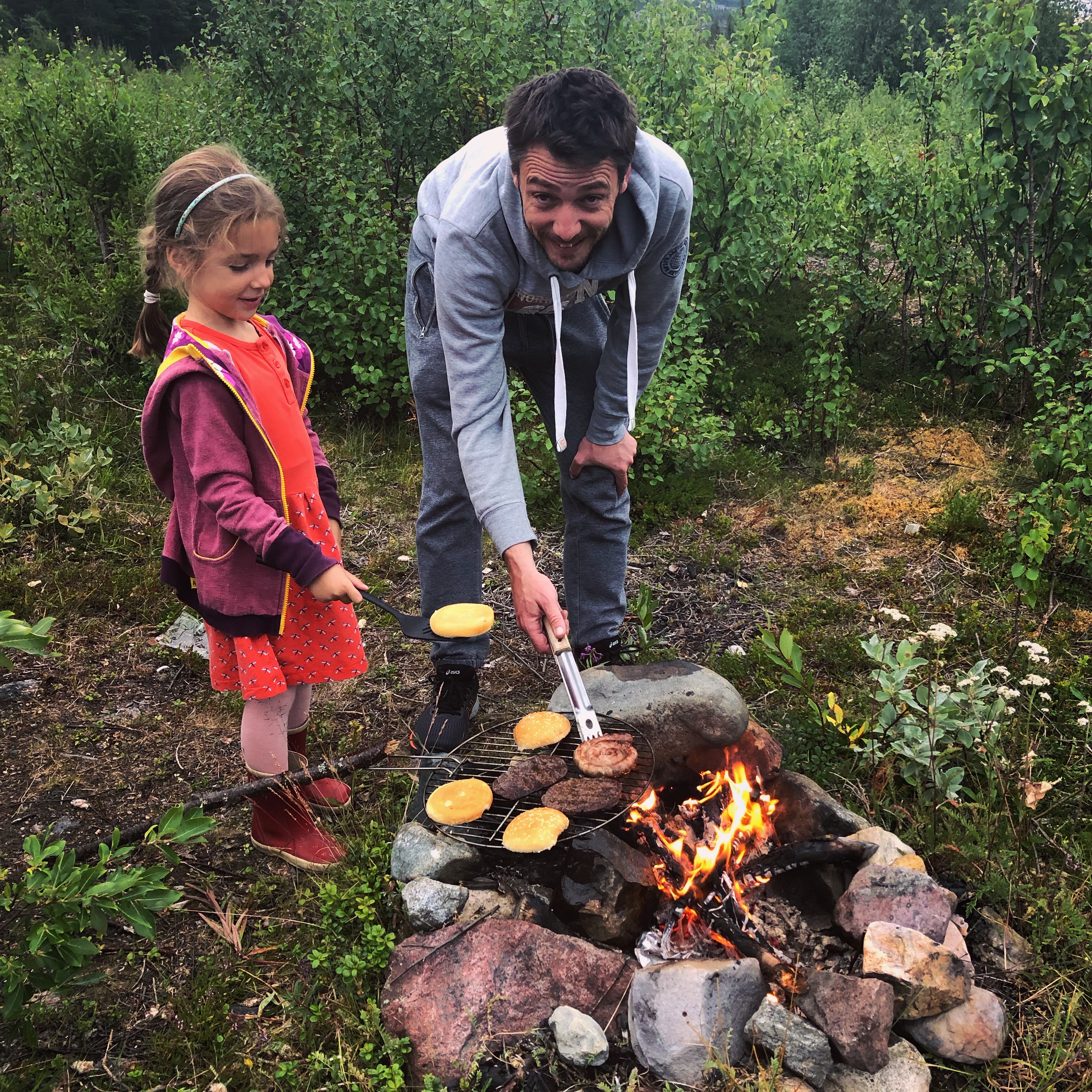 De kids gingen hout sprokkelen alsof ze nooit iets anders deden, verzamelden stenen en genoten van ons kampvuur om de rendierburgers en hotdogs te maken… veel te laat zaten we in ons bedje!