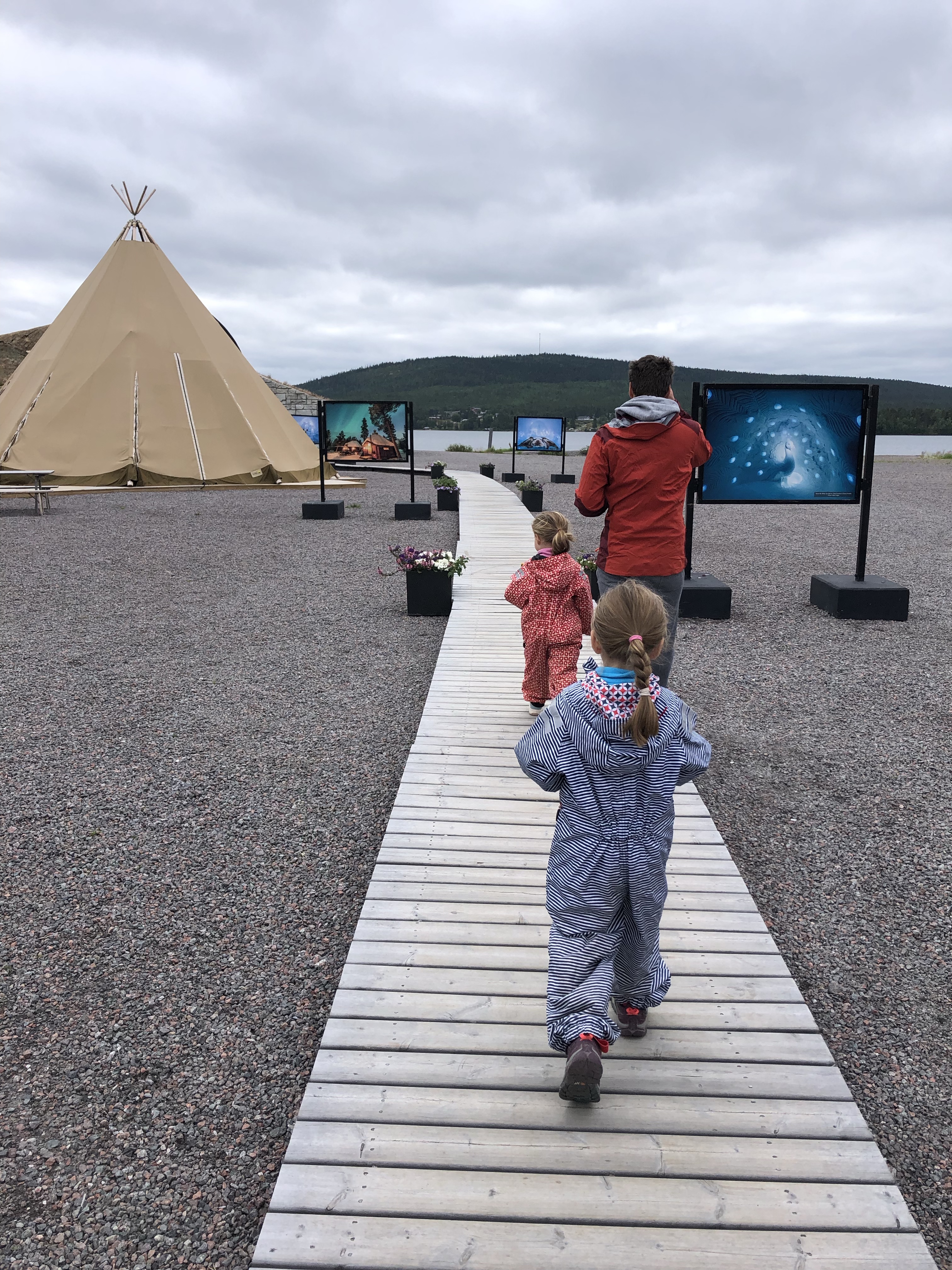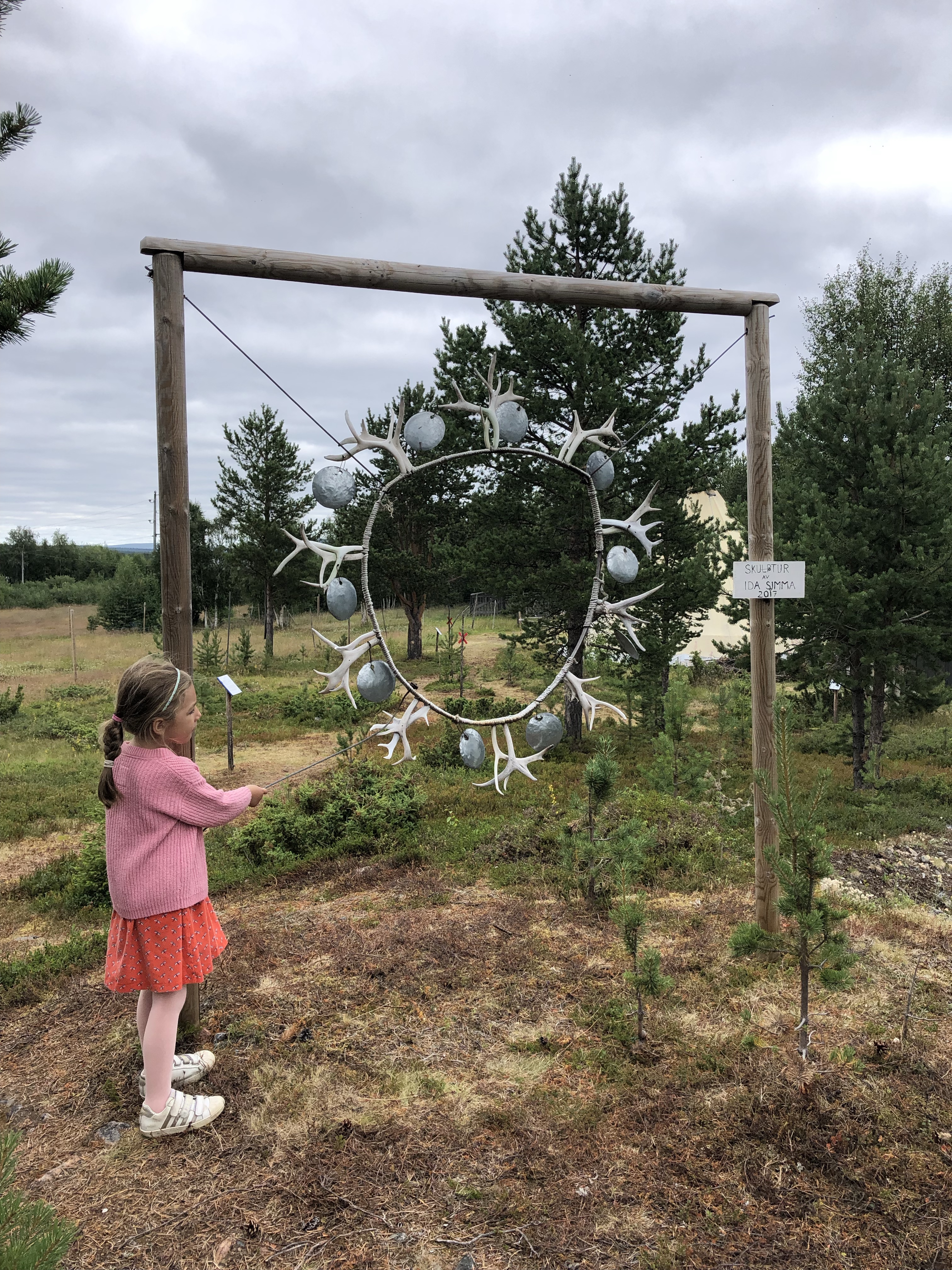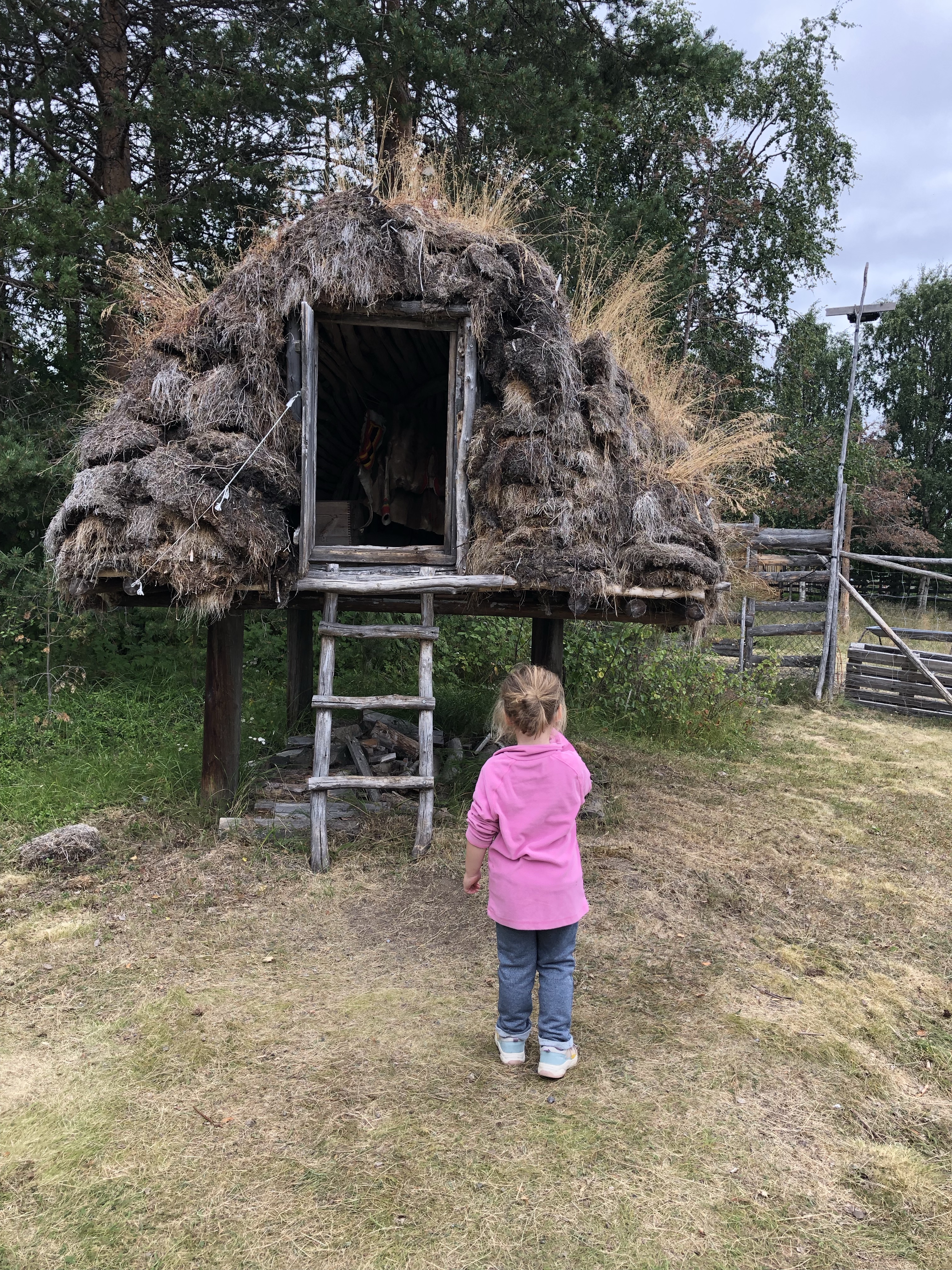 De kids lieten t niet aan hun hart komen, stapten ijverig in elke mogelijke rendiervlaai die je maar kon vinden 🙄 en bezochten mee de expo over de oude drooghutten, Sami kleding, oude tipi tenten en oefenden op lasso gooien om elanden te vangen… blijtsoep toen we ze uit de mini Sami speeltuin haalden.