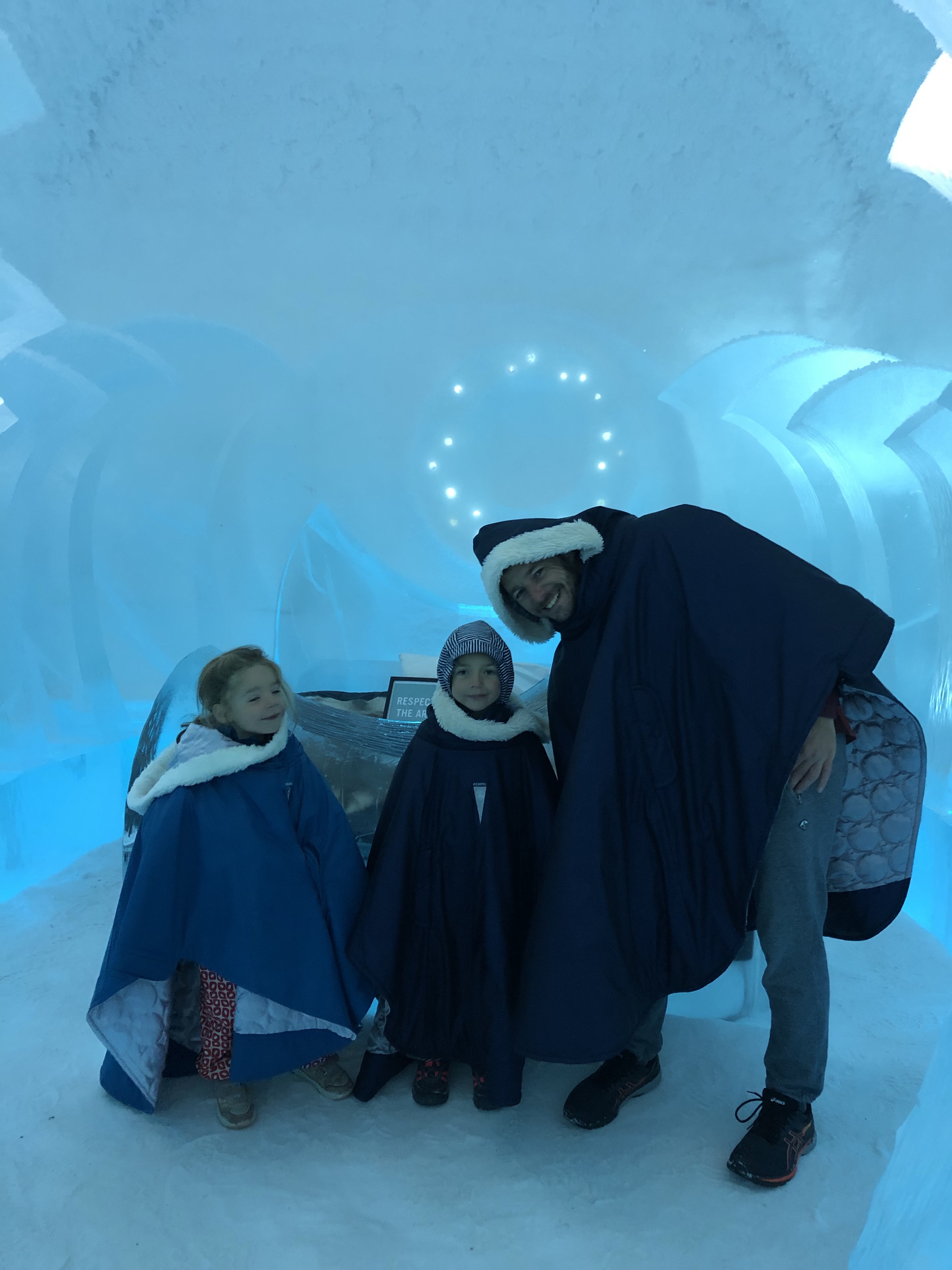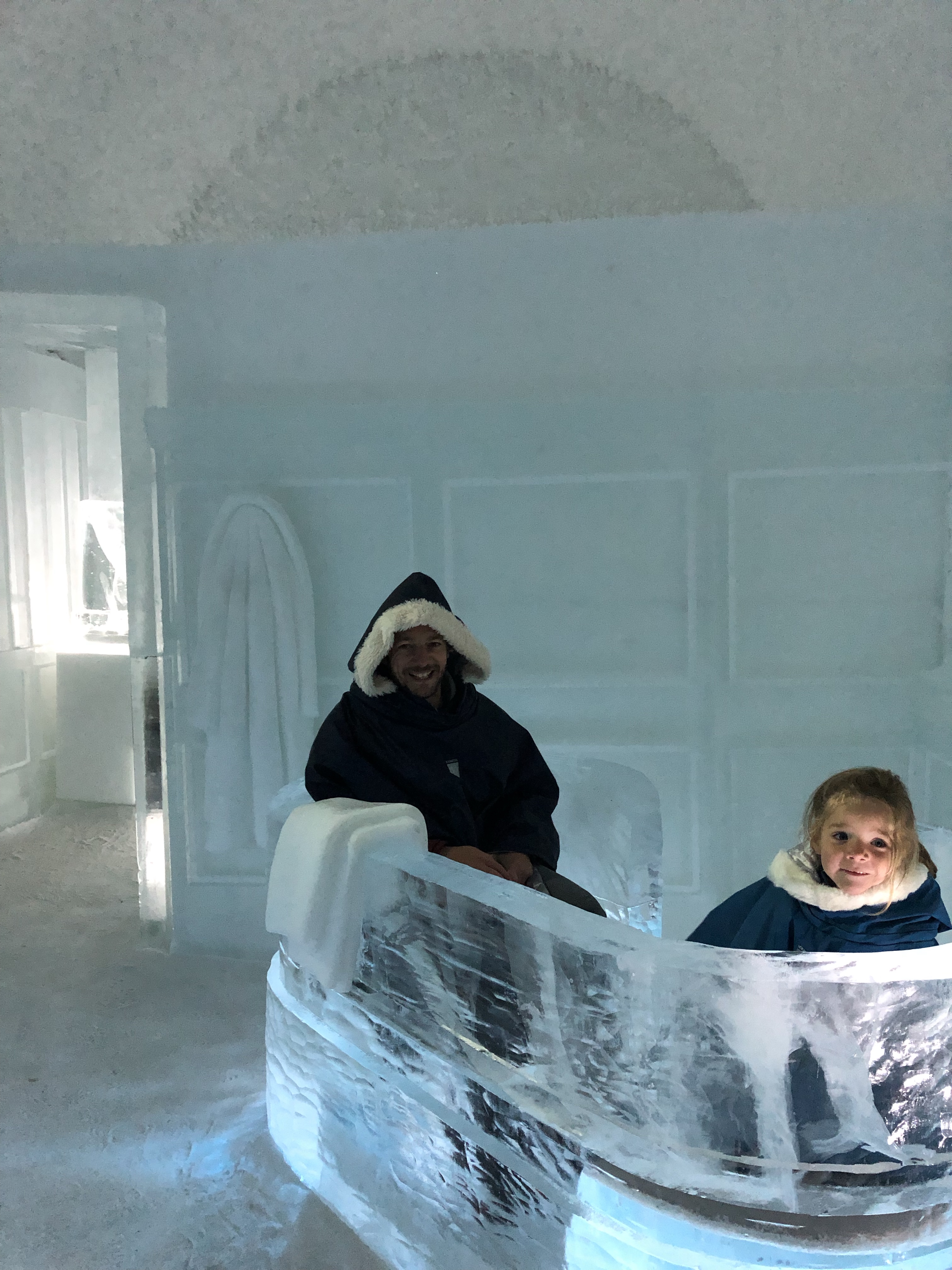 We waanden ons even ijsprinsessen uit Frozen en dwaalden door de ijsiglo. In de winter (en zonder corona) is er uiteraard een veeeeel grotere expositie (en ijsbar waar je (Absolut vodka) drinkt uit ijsbekers) en is alles nog impressionanter. Maar we keken wel al onze ogen uit.