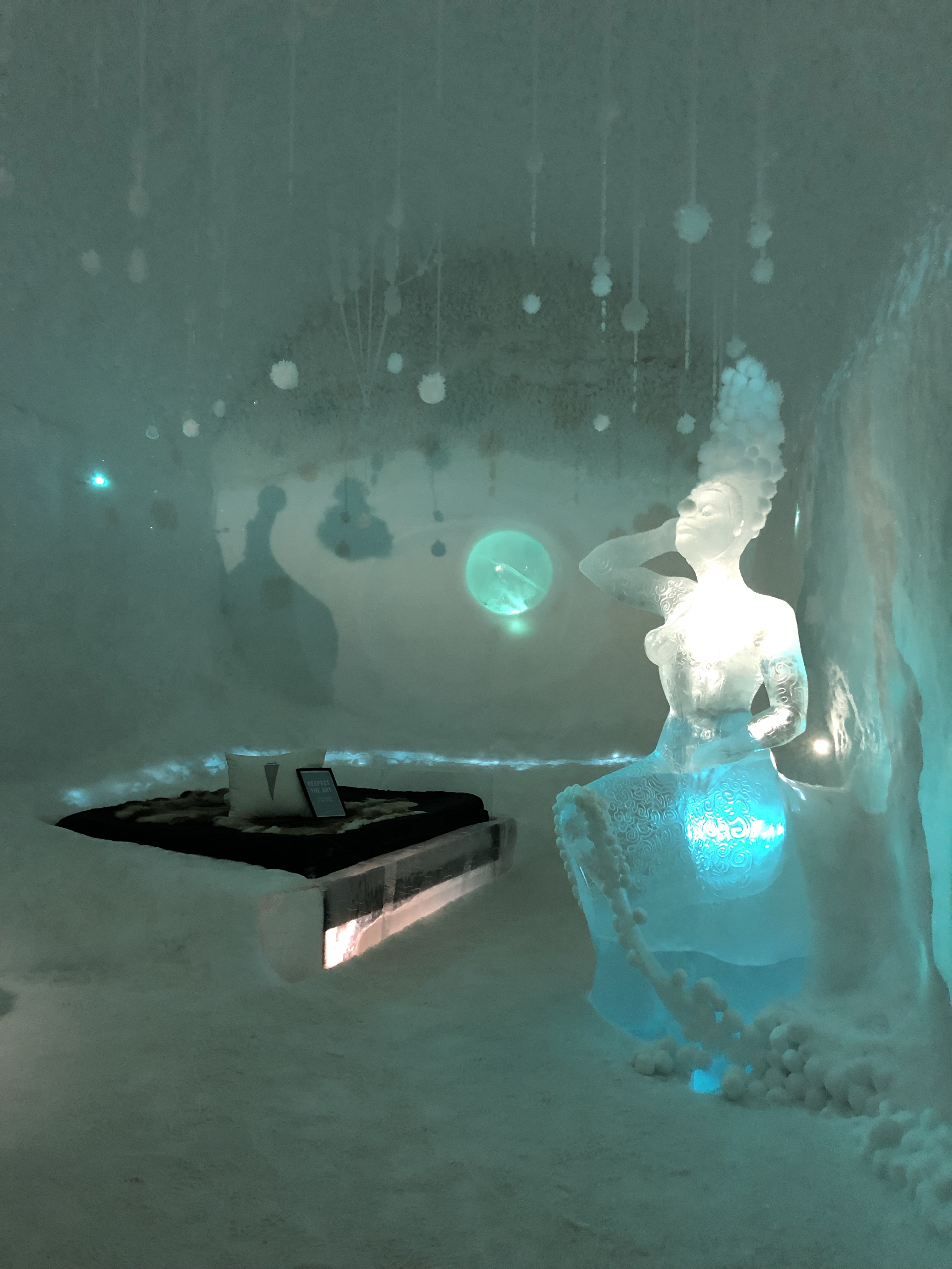 De kamers hebben allemaal een thema die een bepaalde internationale ijssculptuur-artiest uitgewerkt heeft. Hierbij enkele van onze leukste foto’s…